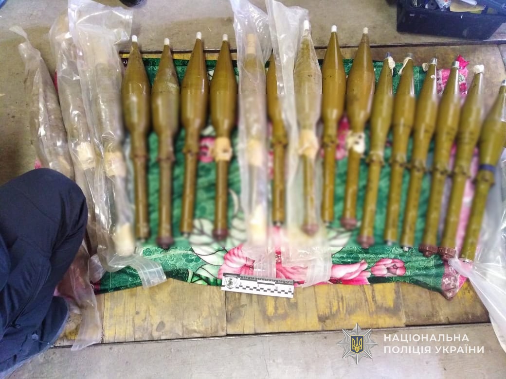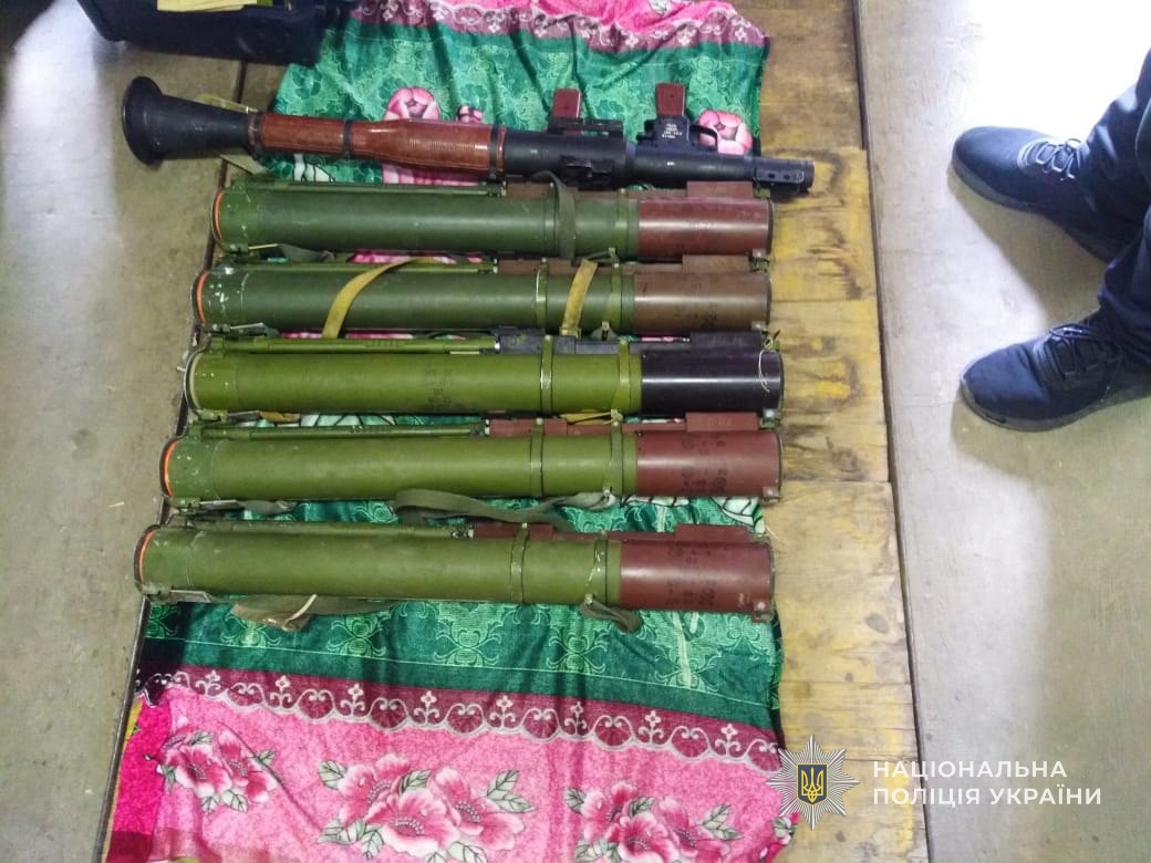 Під час проведення огляду місця події, було виявлено зброю, боєприпаси та вибухові речовини. Зокрема, гранати різного маркування із запалами, гранатомети РПГ-22, гранатометні постріли різного маркування, міна з підривником калібру 82 мм, запали УЗРГМ та УЗРГМ-2, порохові стартові заряди зі стабілізатором ПГ-7, два автомати АК-74 та АКМ, набої калібром 5,45 мм у кількості 3024 штуки, набої калібром 7,62 мм у кількості 492 штуки та інші вибухові речовини. Наявність такого арсеналу чоловік пояснив тим, що близько місяця тому зазначені боєприпаси отримав від свого знайомого, а також повідомив, що, начебто, не знав про те, що зберігання зброї та вибухівки є незаконним.