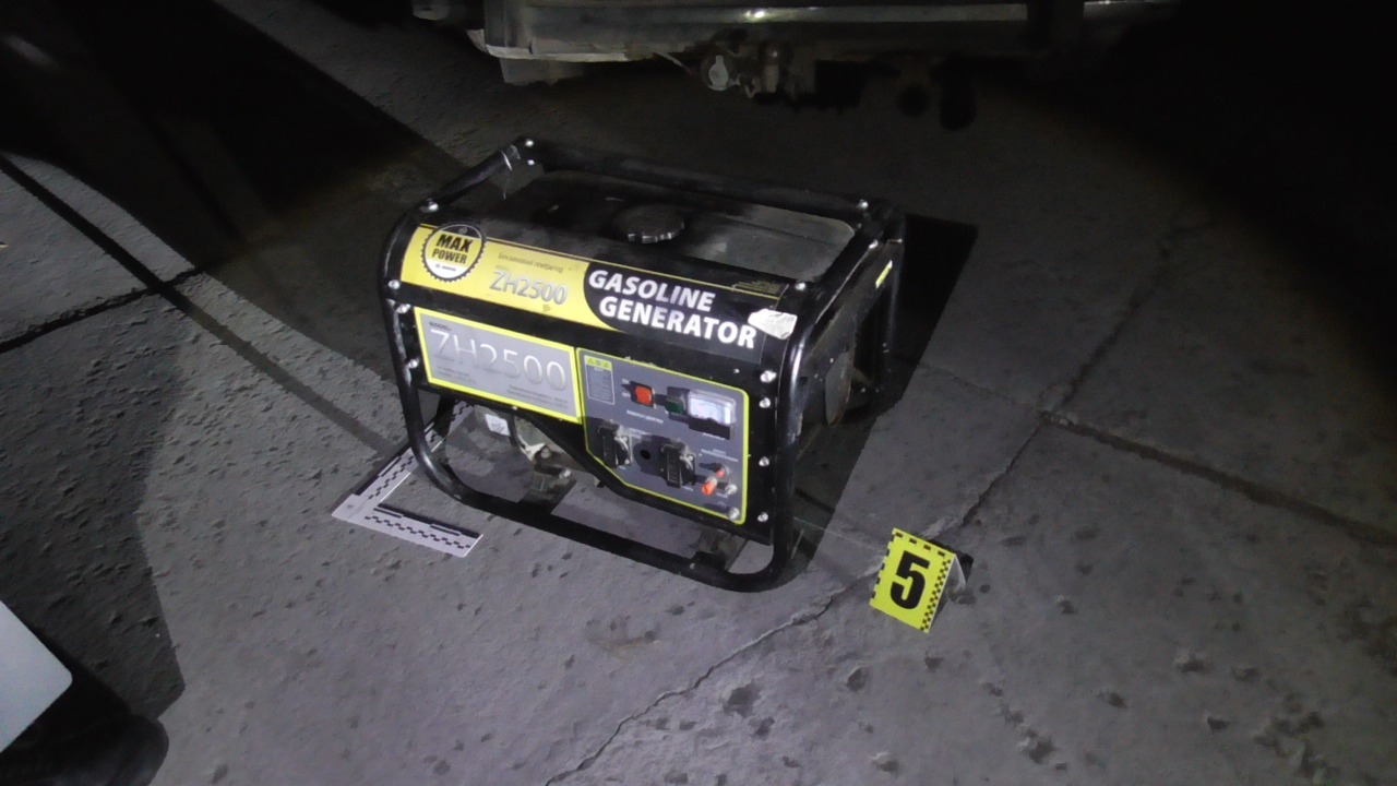 Правоохоронці затримали обох чоловіків прямо посеред вулиці, під час огляду у їх транспортному засобі виявили електрогенератор. Слідчі речові докази вилучили, а зловмисників затримали у порядку статті 208 Кримінального процесуального кодексу України.