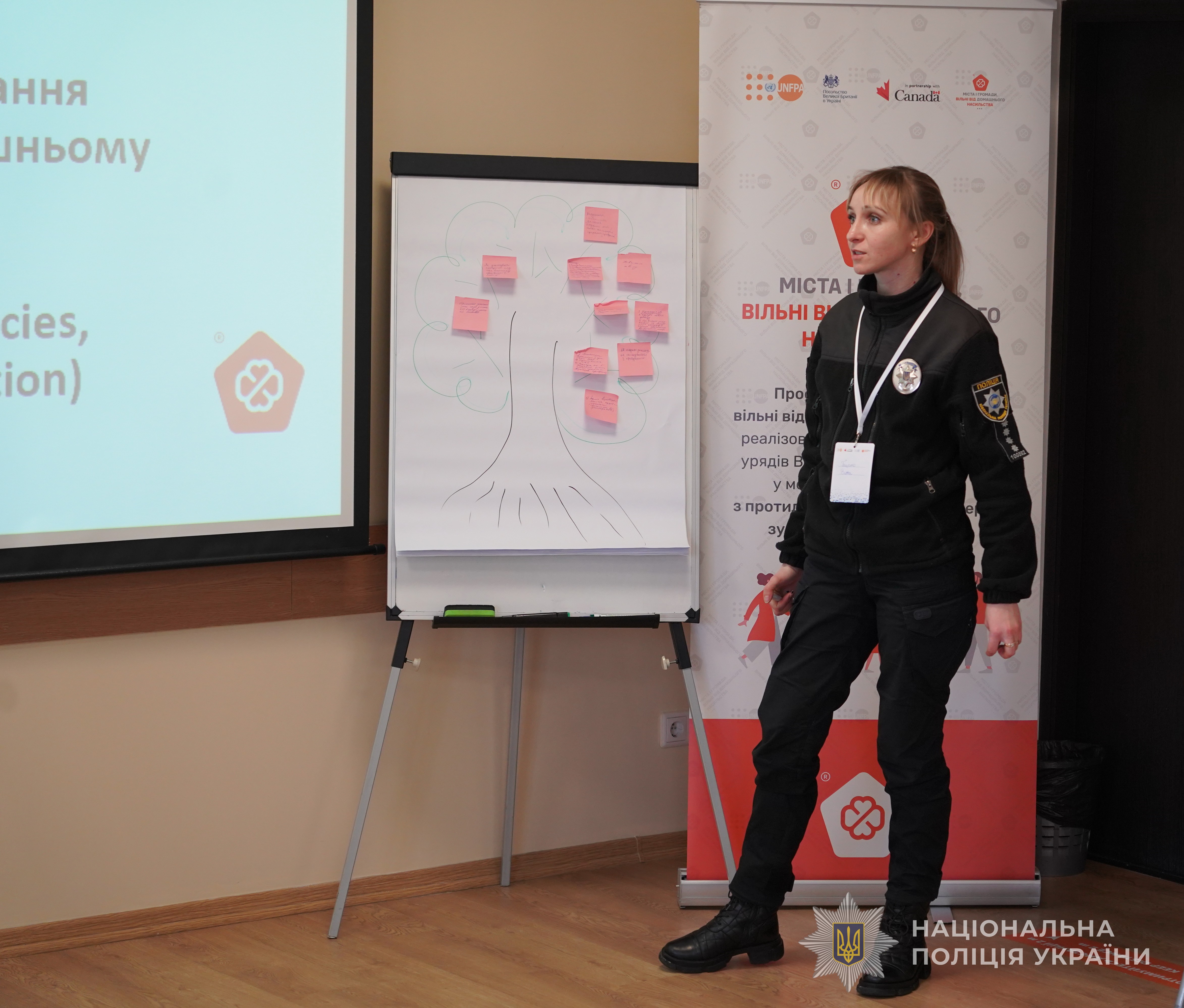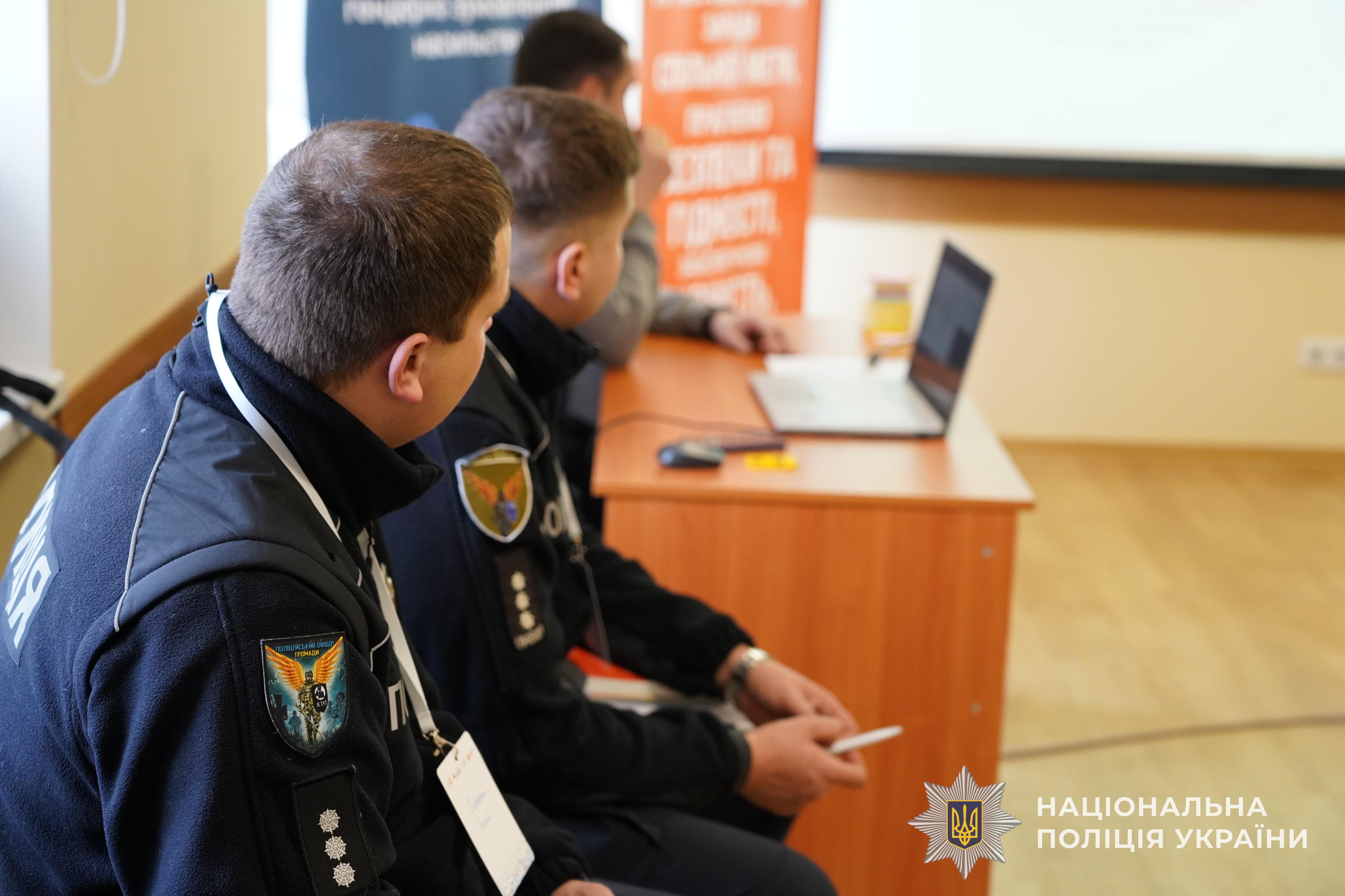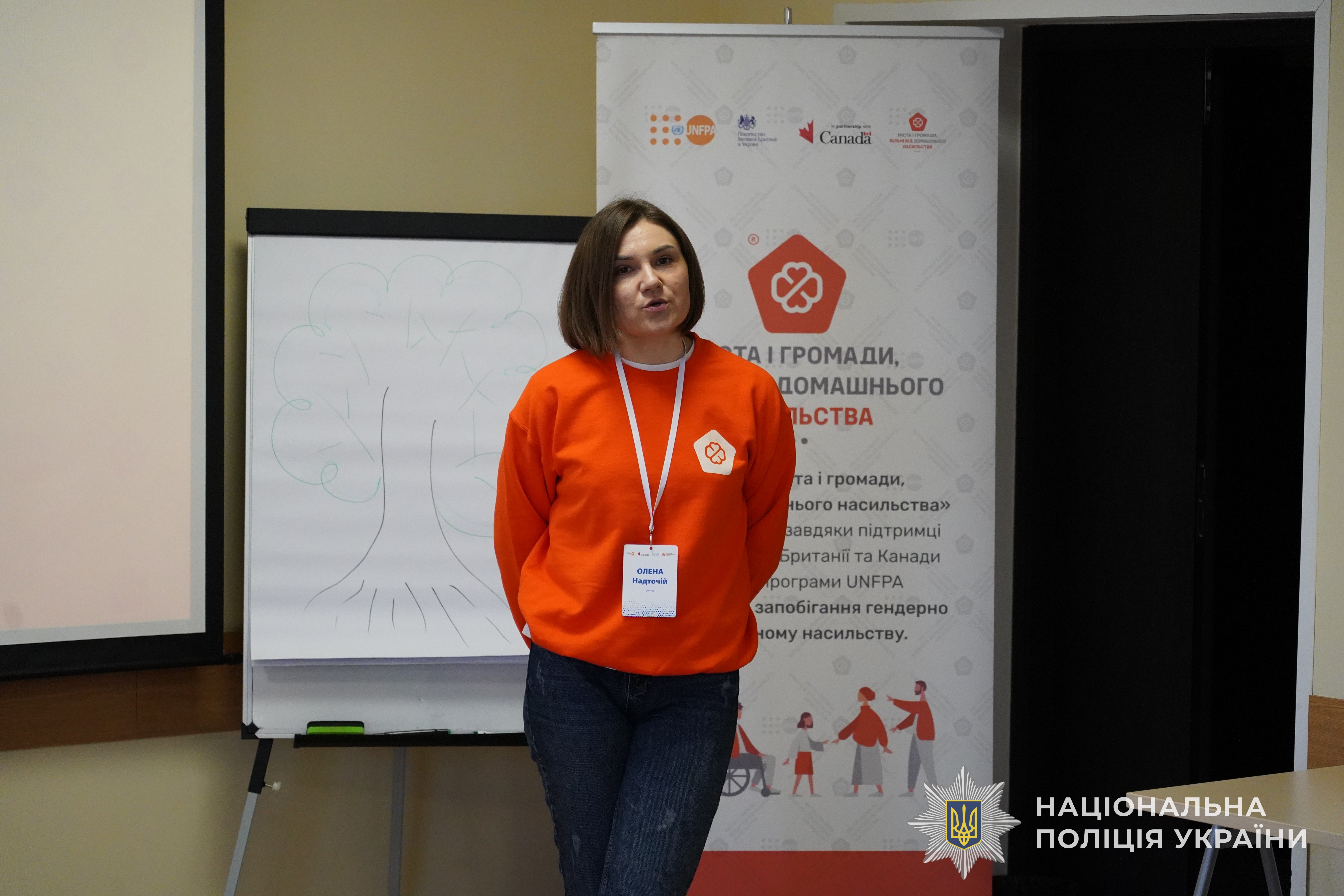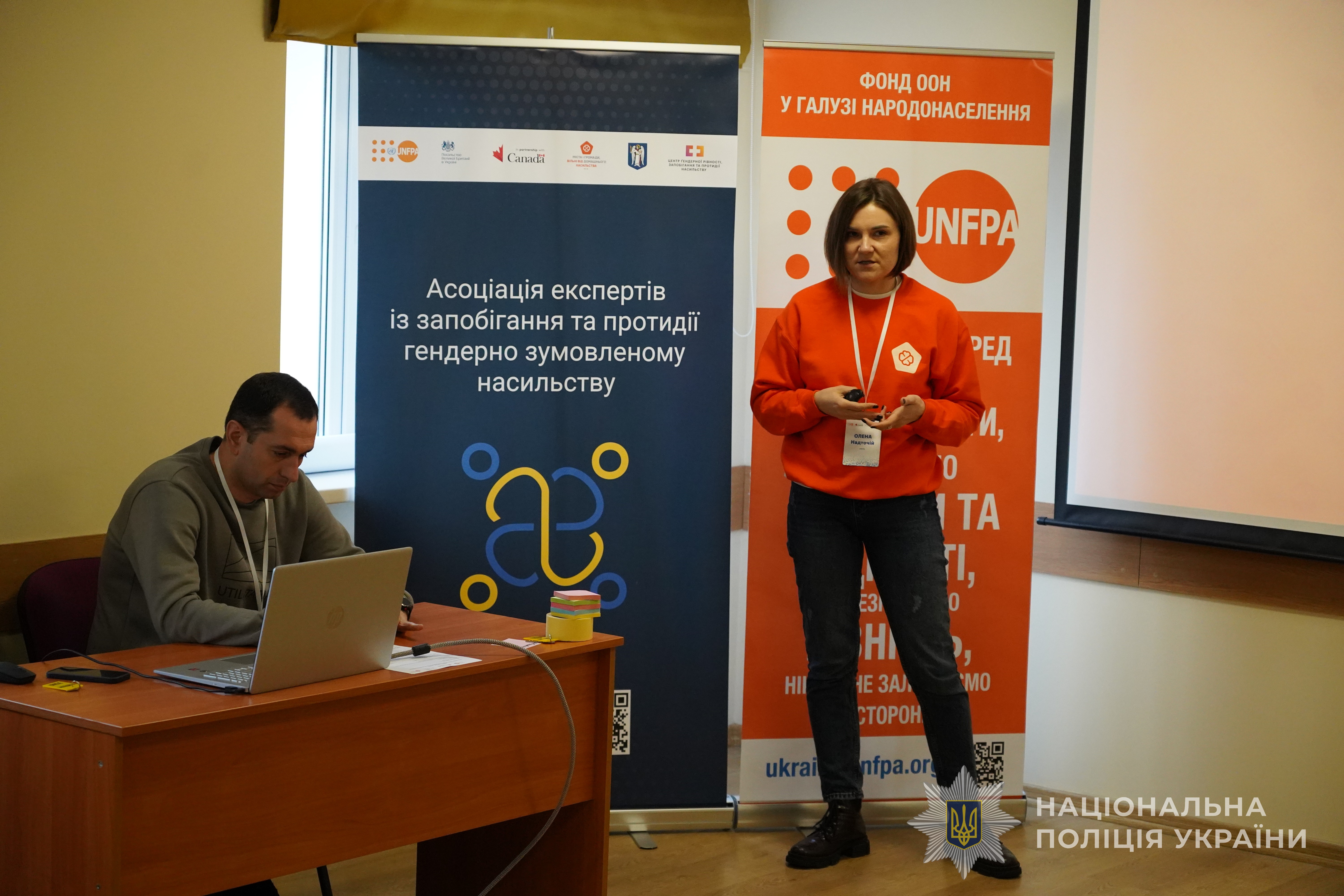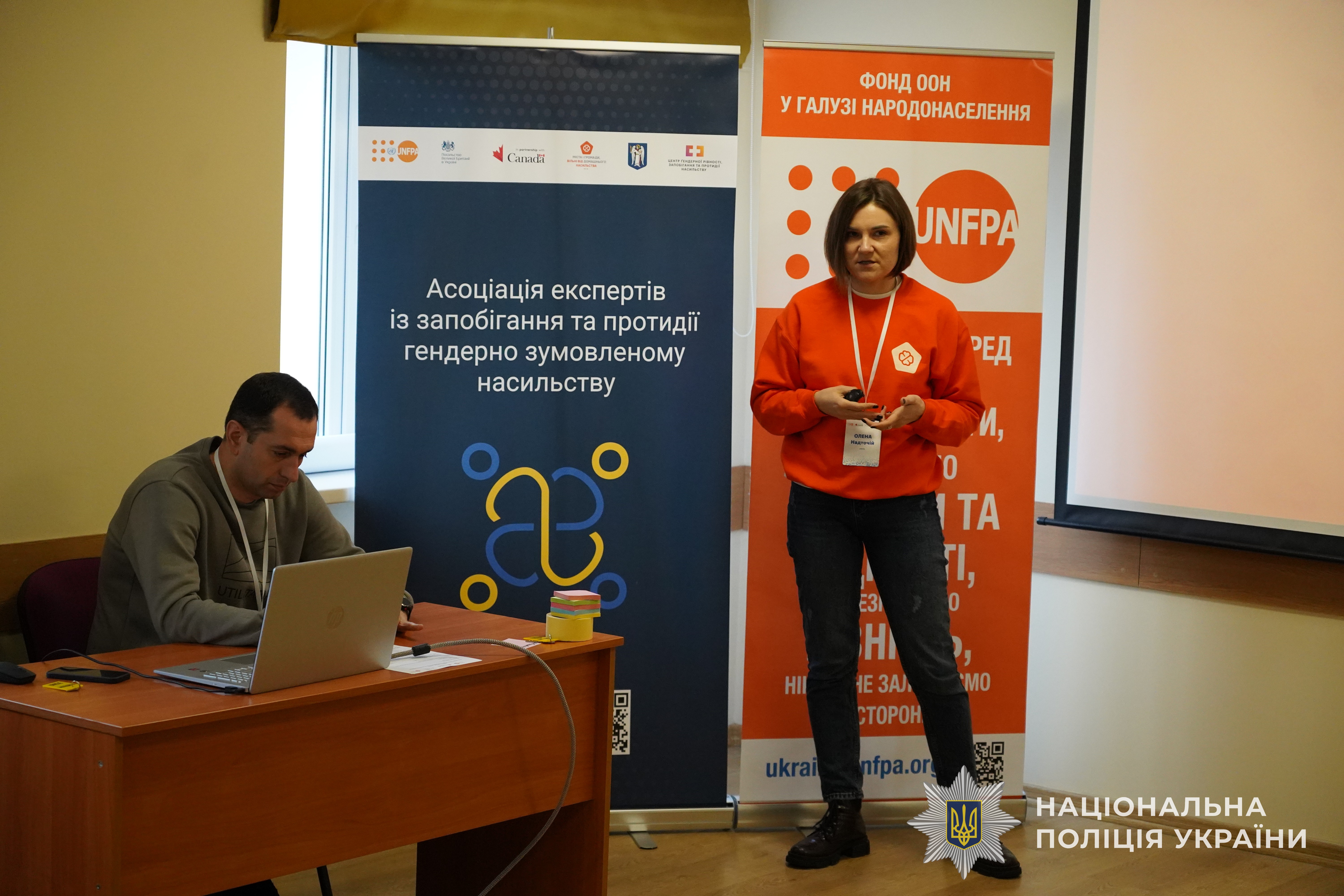 Навчальну сесію для правоохоронців проводили начальник відділу координації управління дільничних офіцерів Департаменту превентивної діяльності Національної поліції України Олександр Свідро та тренерка проєкту Олена Надточій.