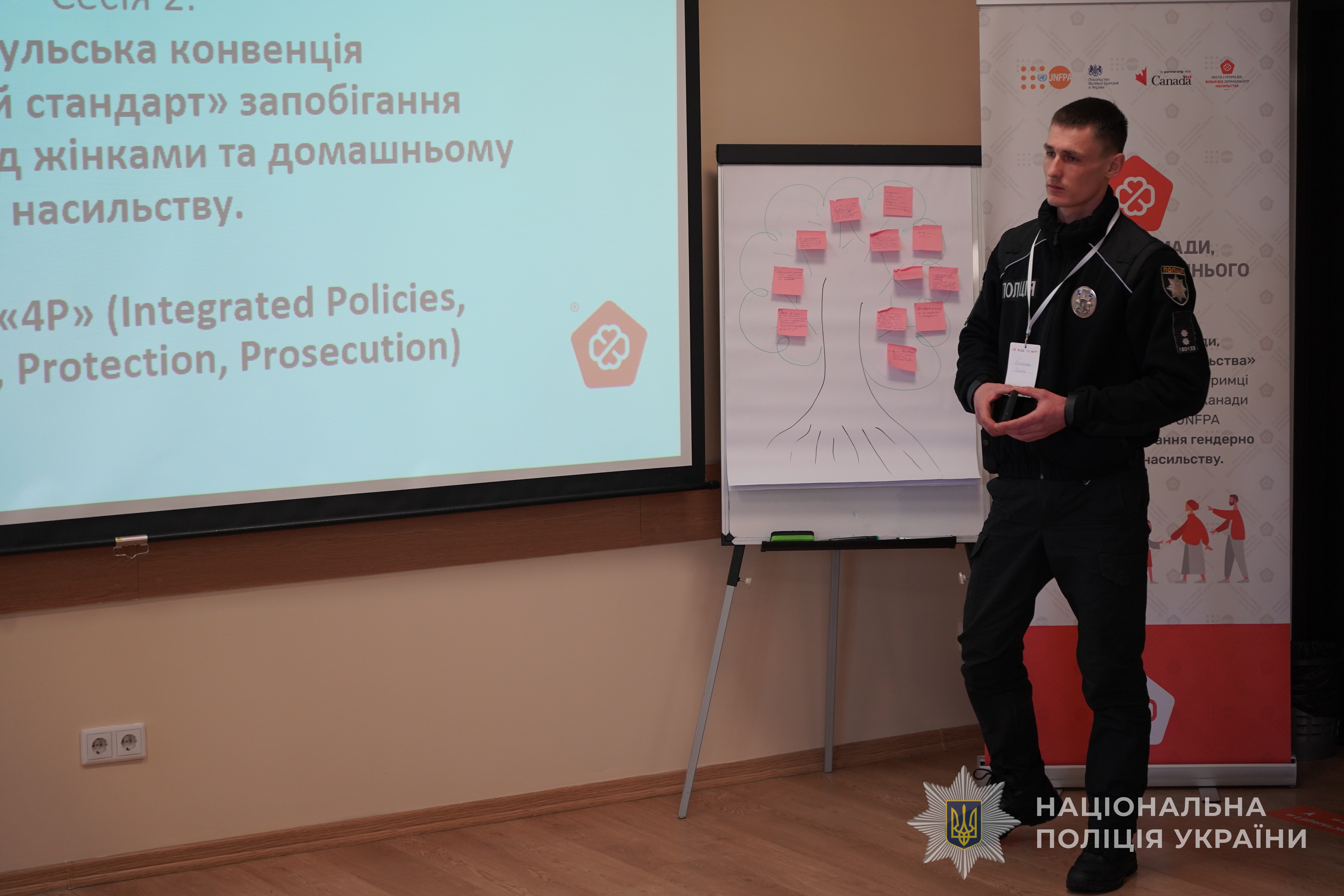 Під час навчання розглядалися питання ролі й завдань підрозділів поліції у забезпеченні комплексного інтегрованого підходу до подолання домашнього насильства, притягнення кривдників до відповідальності та зміни їхньої поведінки тощо.