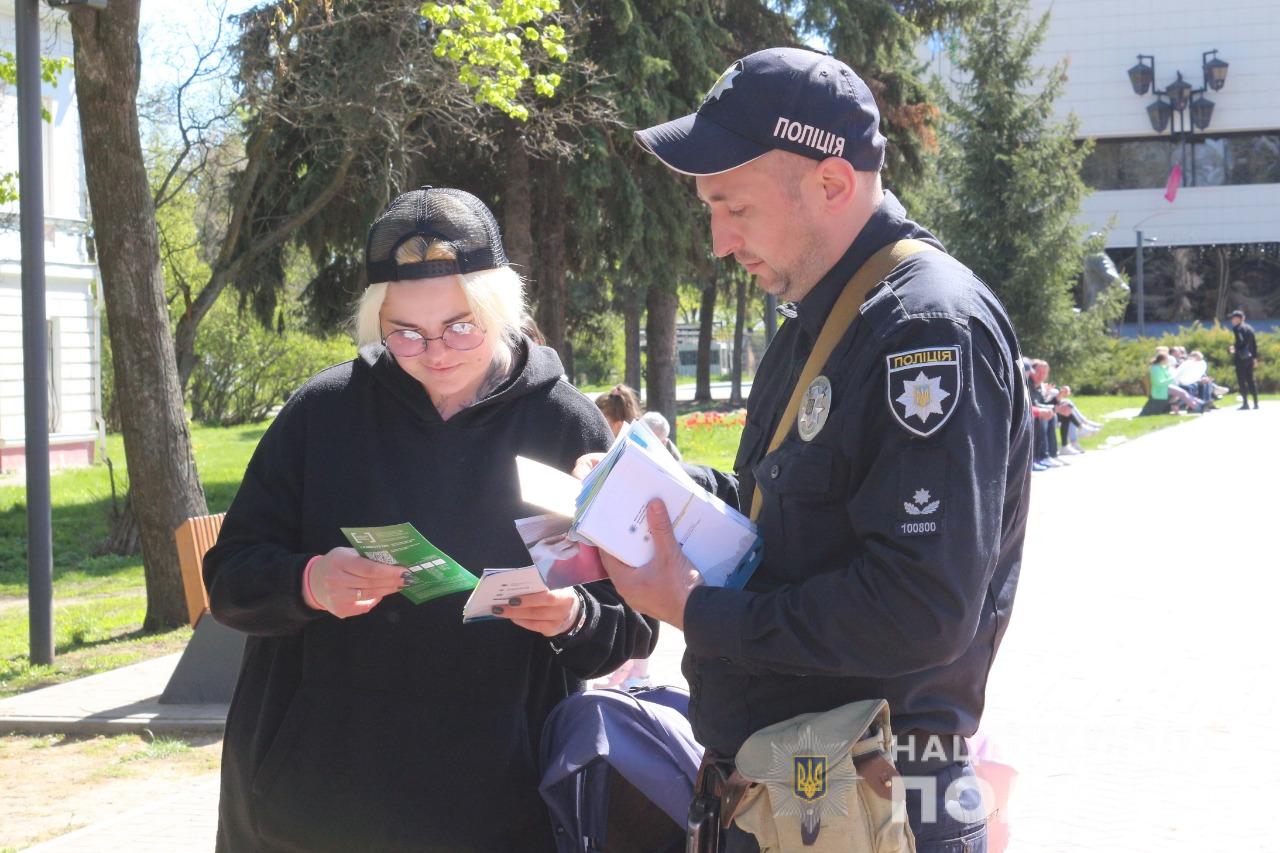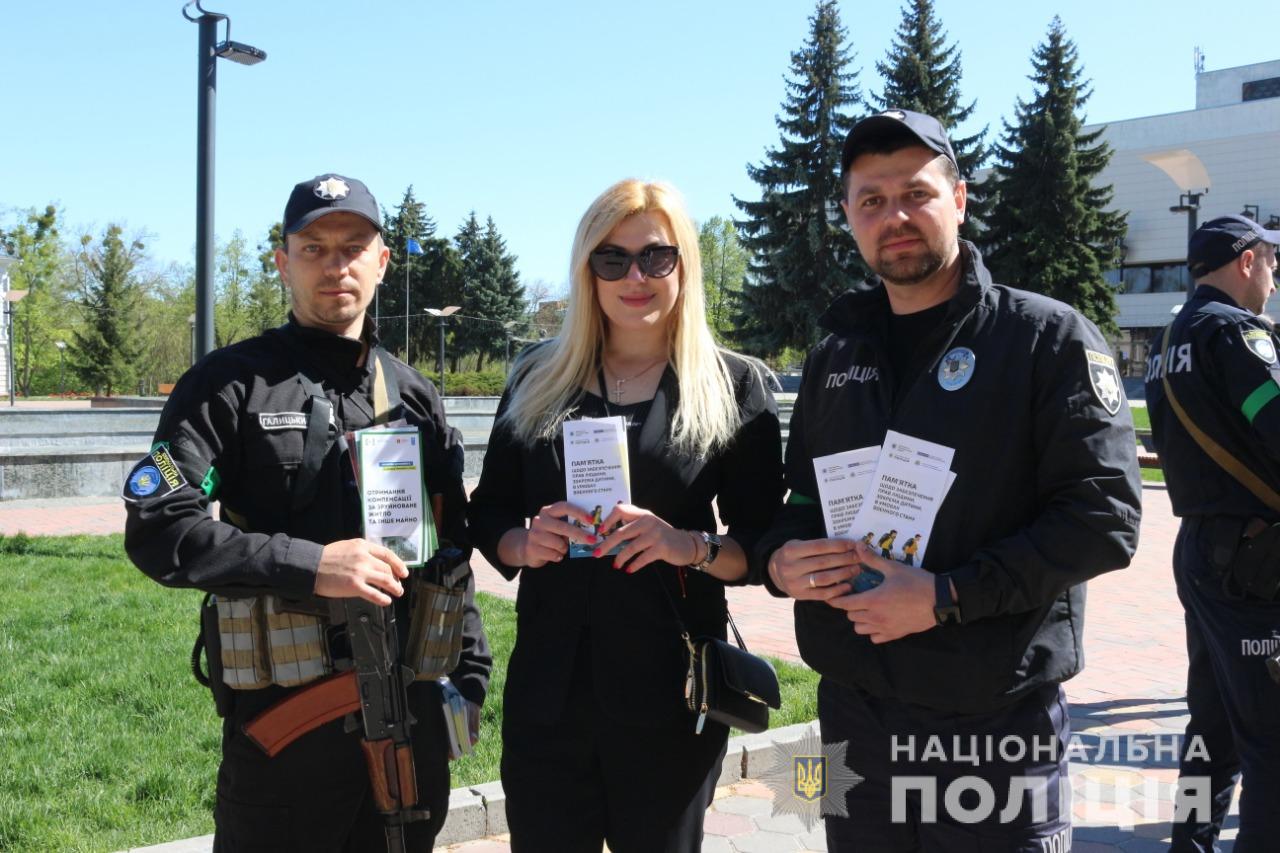 Сьогодні в обласному центрі ювенальні поліцейські спільно з старшим інспектором з особливих доручень Управління дотримання прав людини Національної поліції України роздали громадянам пам’ятки щодо забезпечення прав і свобод людини, зокрема дитини під час війни.
