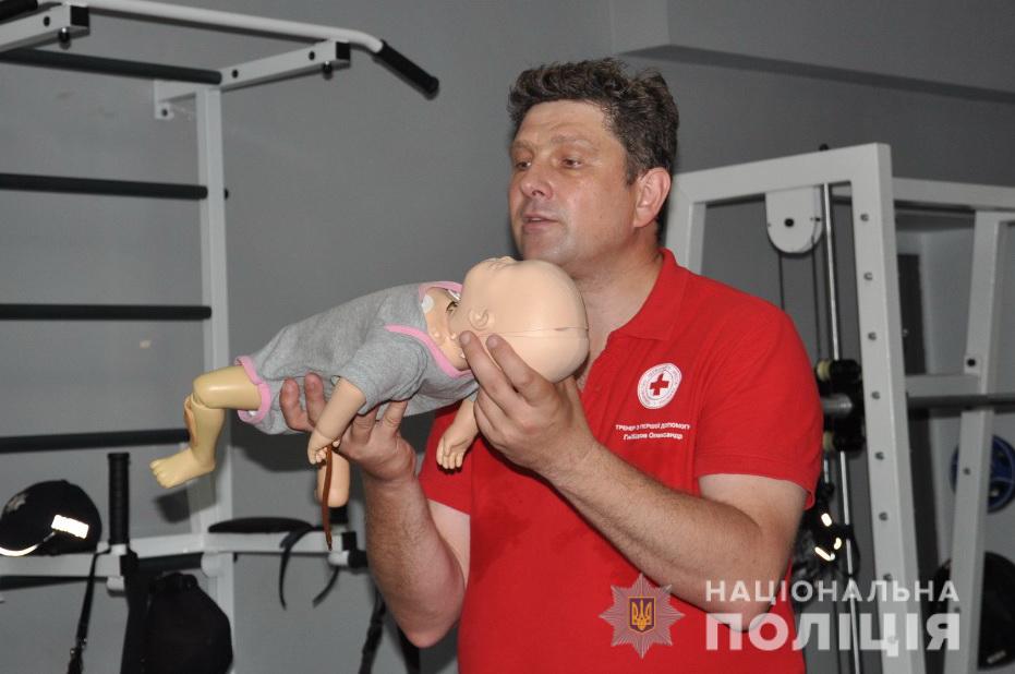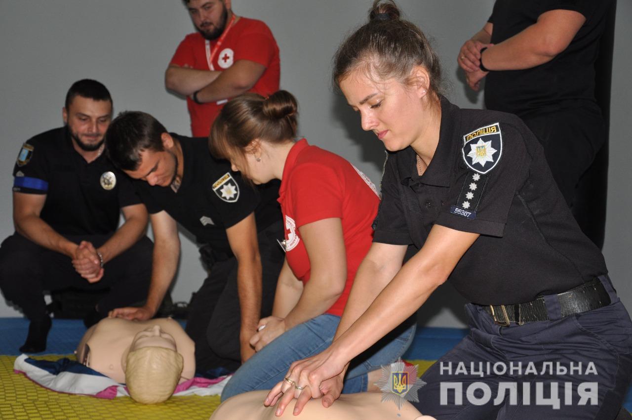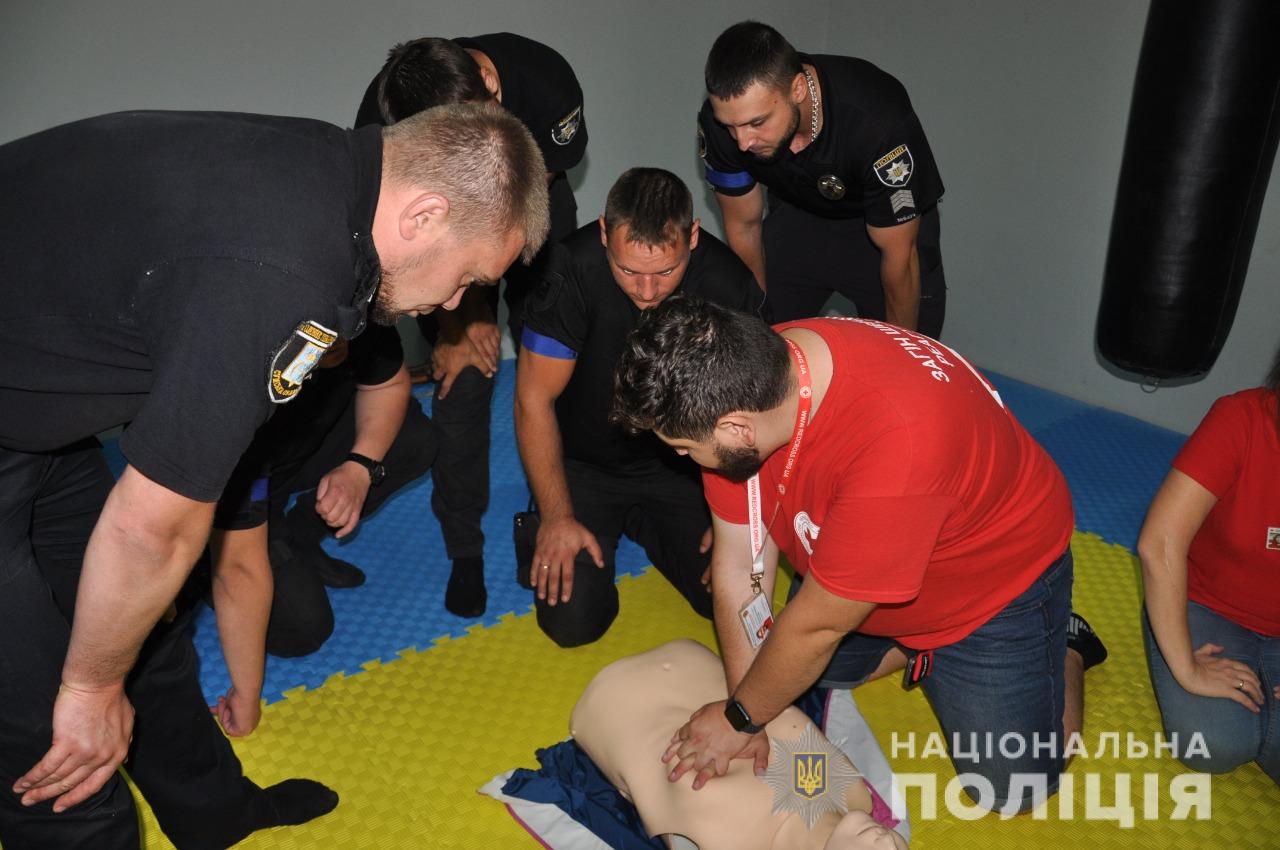 Інструктори продемонстрували працівникам поліції на навчальних манекенах як правильно надавати першу допомогу постраждалим до приїзду медичних працівників. Навчали правоохоронців проводити серцево-легеневу реанімацію, демонстрували способи зупинки кровотечі. Розповіли про особливості транспортування потерпілого та показали як слід діяти при різних травмах та як знизити ризик виникнення ускладнень у випадку гострого болю, інсульту та серцевого нападу.