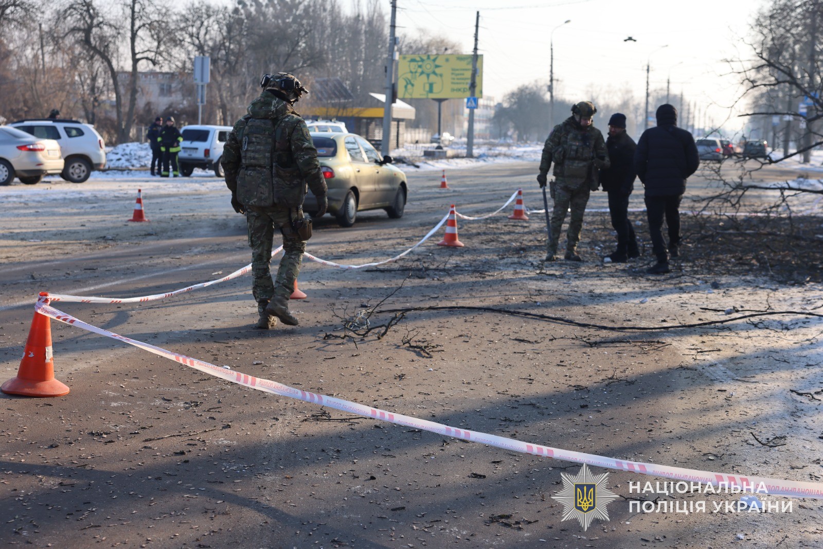 На місці події працюють слідчі поліції, вибухотехніки та інші екстрені служби. Правоохоронці фіксують кожен факт руйнувань і збирають докази чергового удару по цивільних об’єктах.