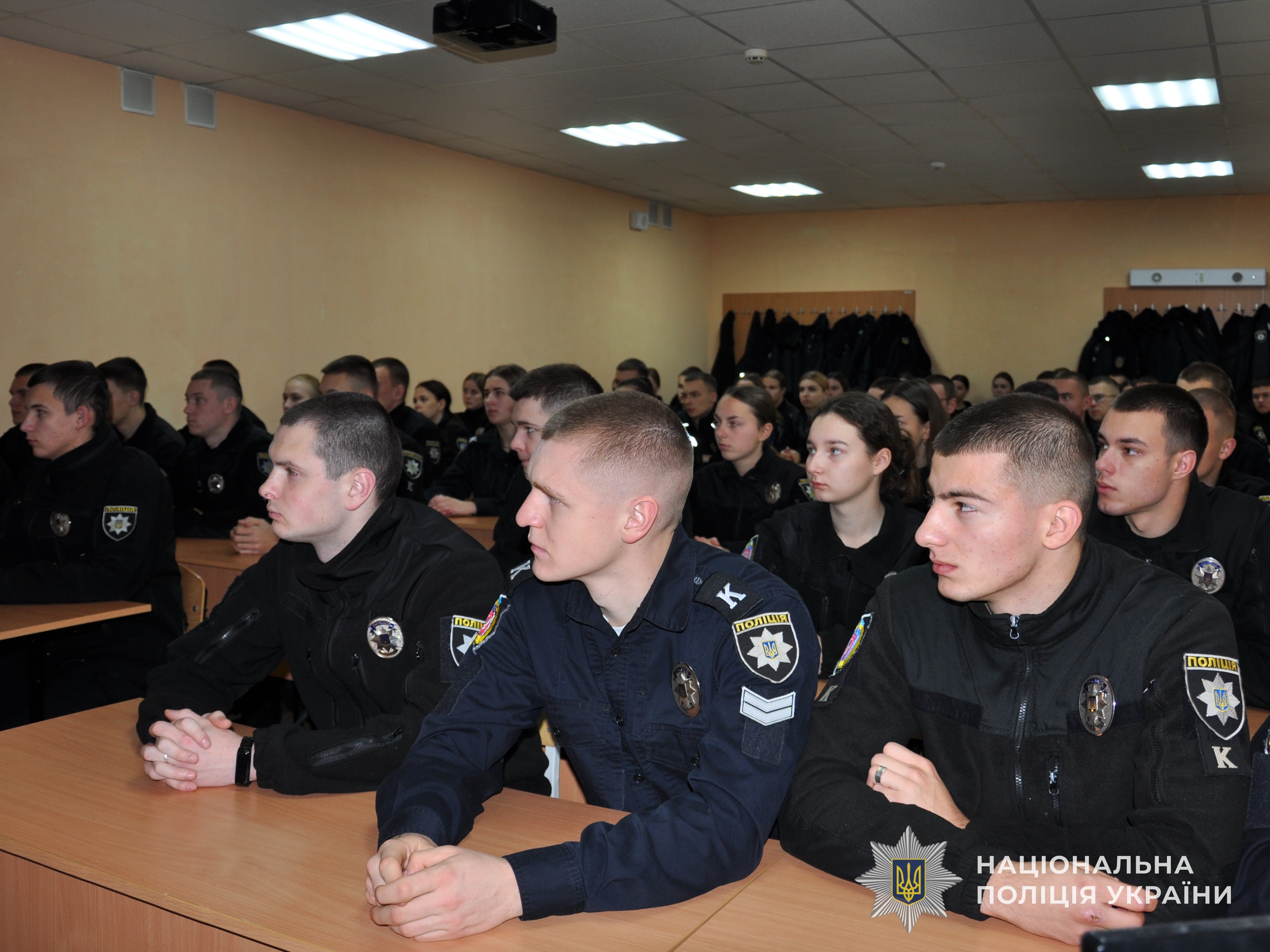 Під час заняття були розглянуті питання стосовно основних понять про радіозв’язок, переваг та недоліків різних видів радіозв’язку, правил експлуатації засобів радіозв’язку та правил ведення радіообміну. Спеціалістами УІАП ГУНП було продемонстровано зразки сучасних цифрових радіостанцій (стаціонарних, автомобільних та переносних) різних виробників. Працівники поліції наочно відтворили послідовність дій для проведення радіозв’язку між автомобільним та пішим нарядами, а також надали курсантам можливість самим спробувати себе у якості кореспондента радіомережі.