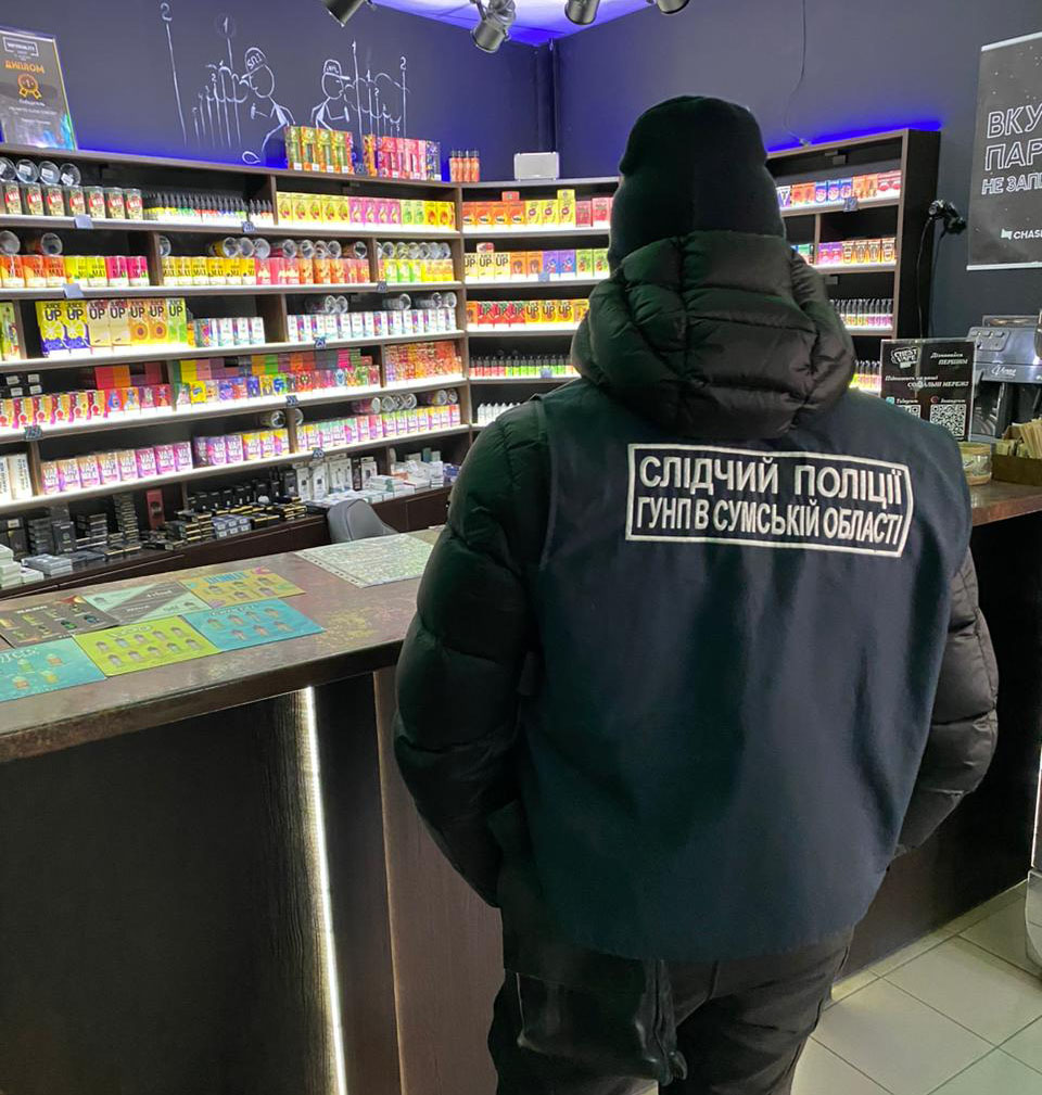 У ході слідства встановлено, що ряд суб’єктів господарської діяльності в м. Суми організували схему незаконного придбання, перевезення, зберігання з метою збуту нікотиновмісних сумішей для електронних цигарок без марок акцизного збору. При цьому збут зазначених підакцизних товарів здійснювався переважно в двох магазинах обласного центру.