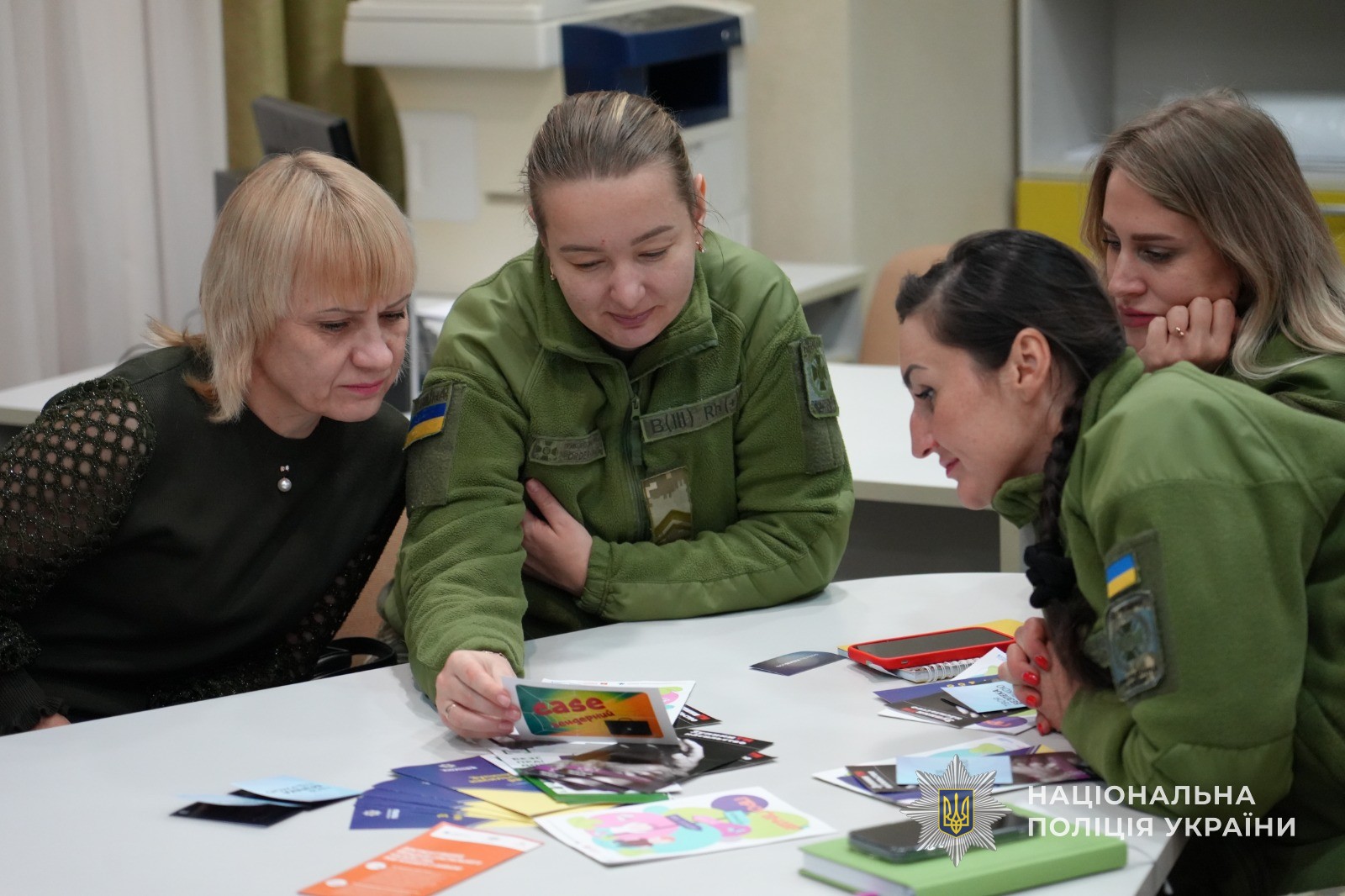 Затим поліцейські та прикордонники спільно з психологом виконували вправи на стресостійкість (саморегуляція власного емоційного стану), а з представником центру з надання безоплатної правової допомоги провели квест на тему «Фемінітиви. Їх застосування в практичній діяльності. Гендерно чутлива лексика».