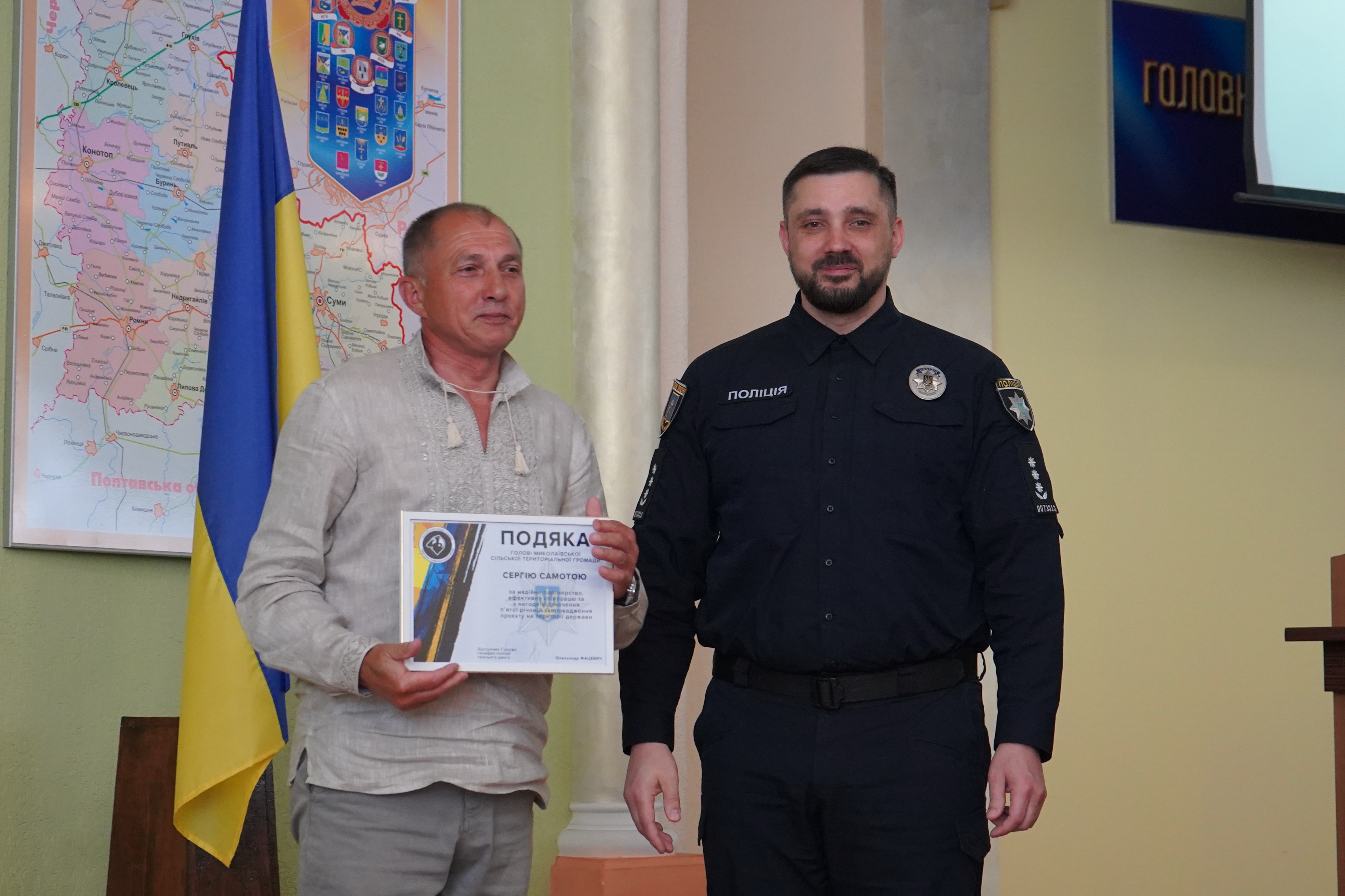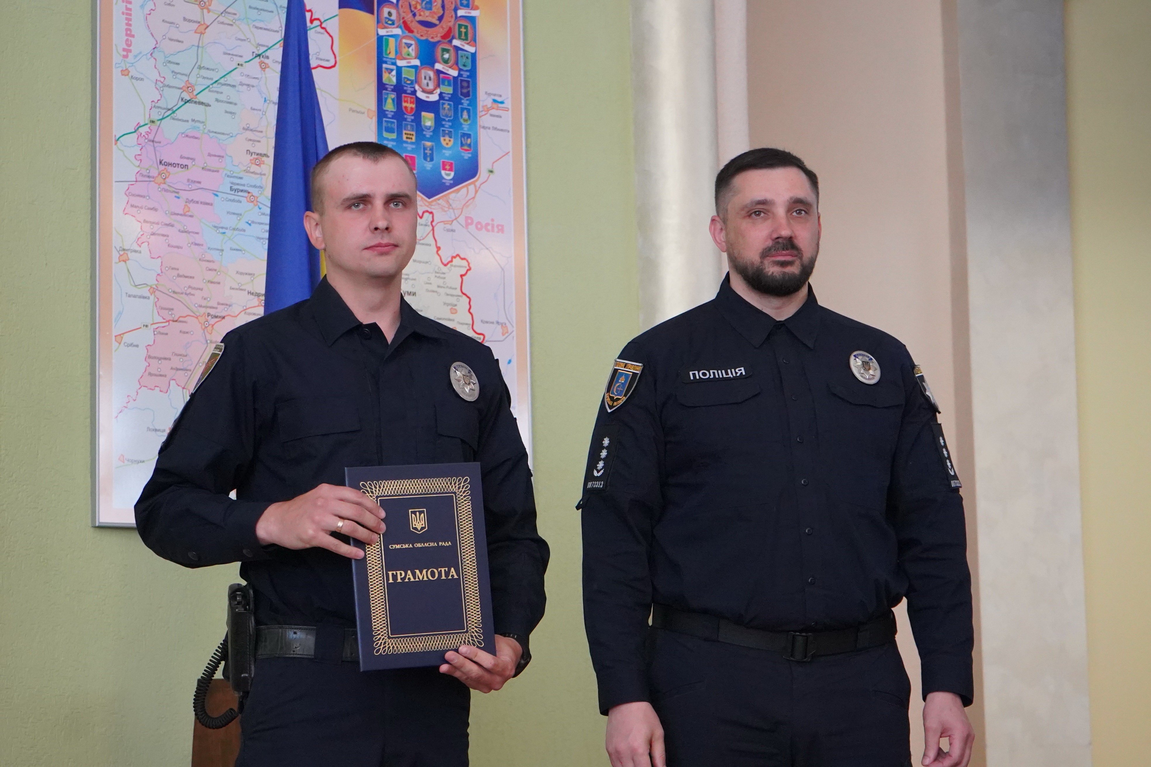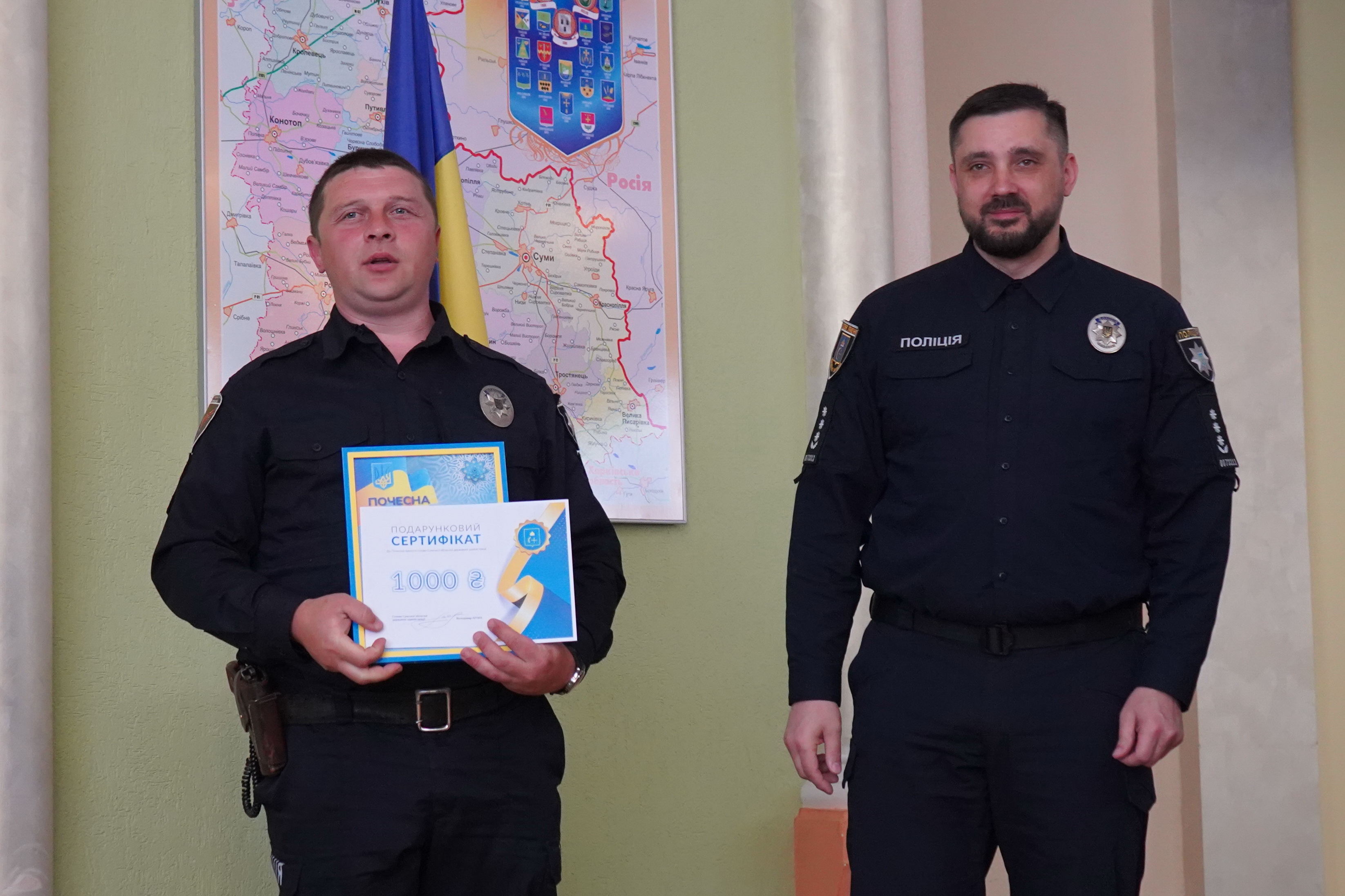 Після чого, за сумлінне ставлення до виконання посадових обов’язків, ініціативу, наполегливість та з нагоди відзначення п’ятої річниці запровадження проєкту на території держави кращих поліцейських офіцерів громад було нагороджено Подяками Національної поліції України, грамотами Сумської обласної військової адміністрації та Сумської обласної ради, а також цінними подарунками.