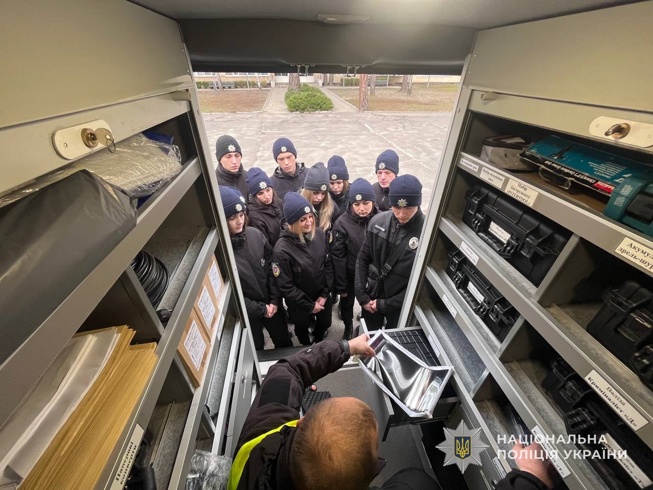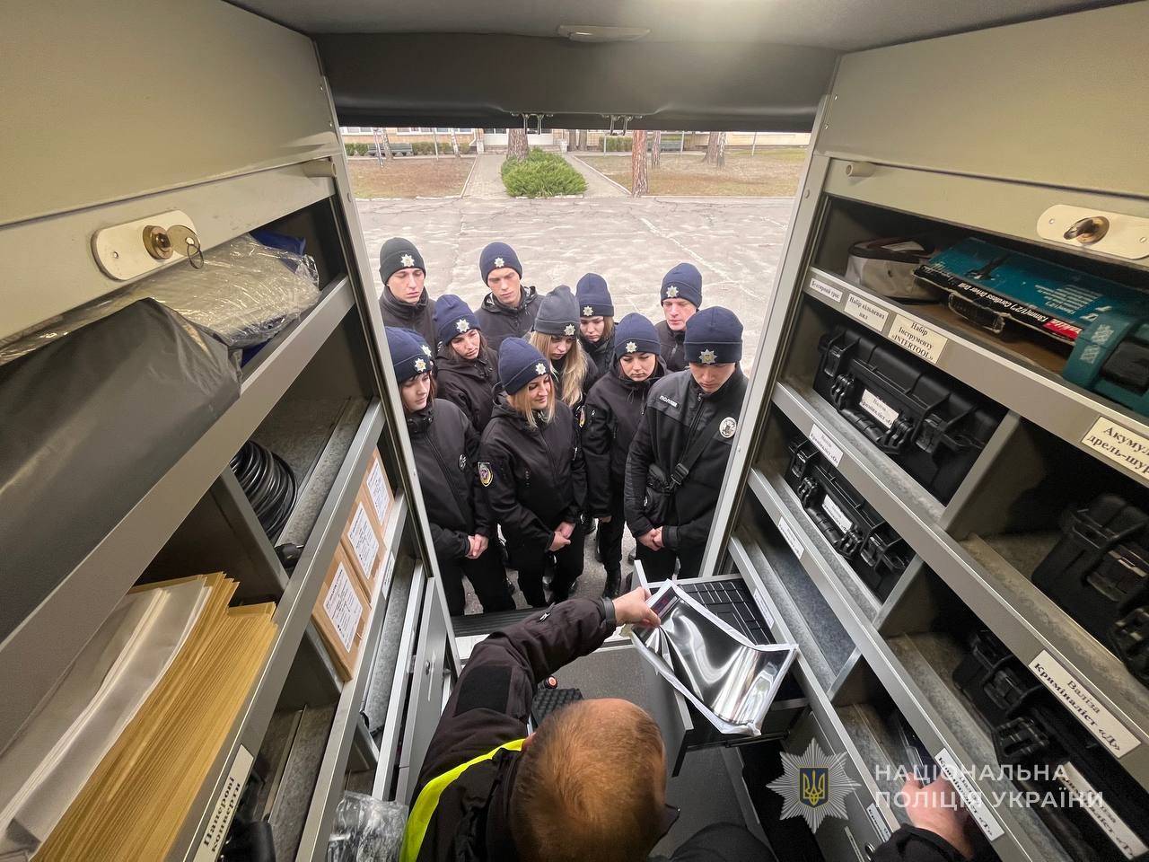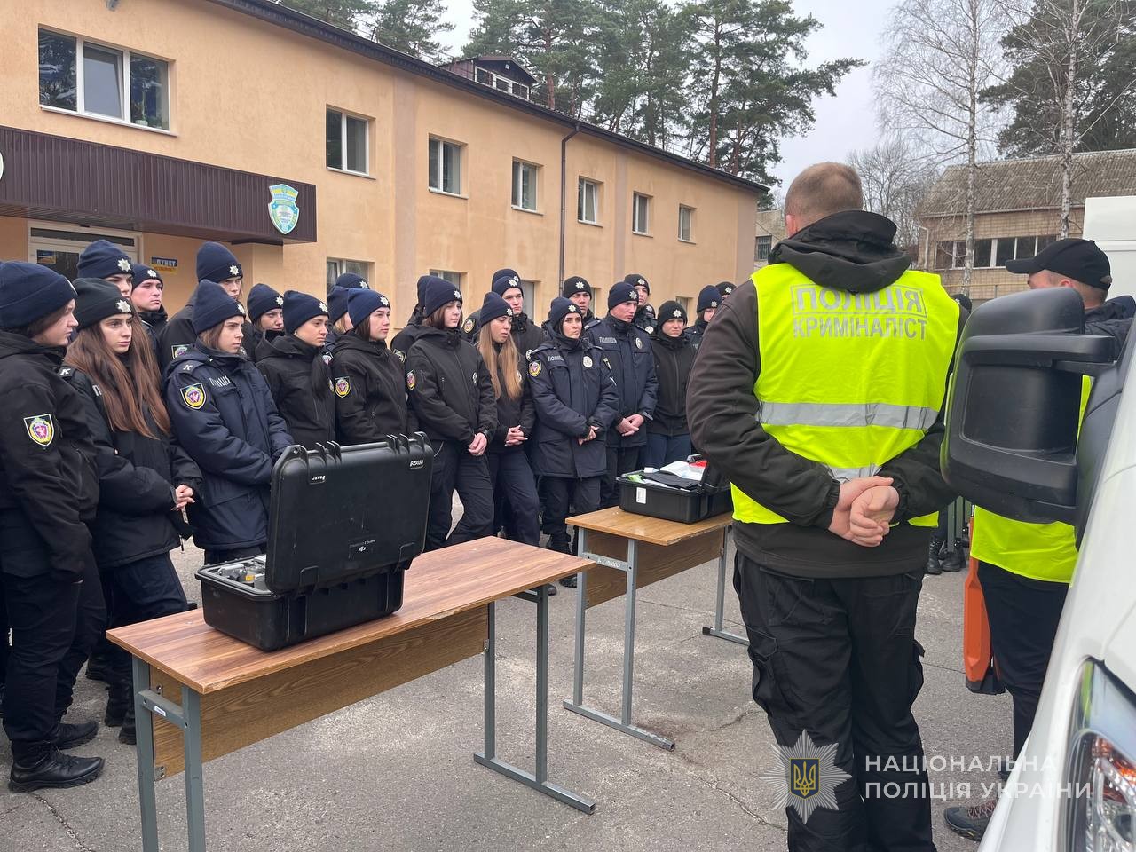 Заняття розпочались з ознайомлення курсантів з професією спеціаліста-криміналіста, основними завданнями, які покладені на їх підрозділ та особливостями роботи. Працівники поліції продемонстрували пересувну криміналістичну лабораторію, її технічні можливості та оснащення. Розповіли про види валіз, що мають у використанні, а також їх призначення.