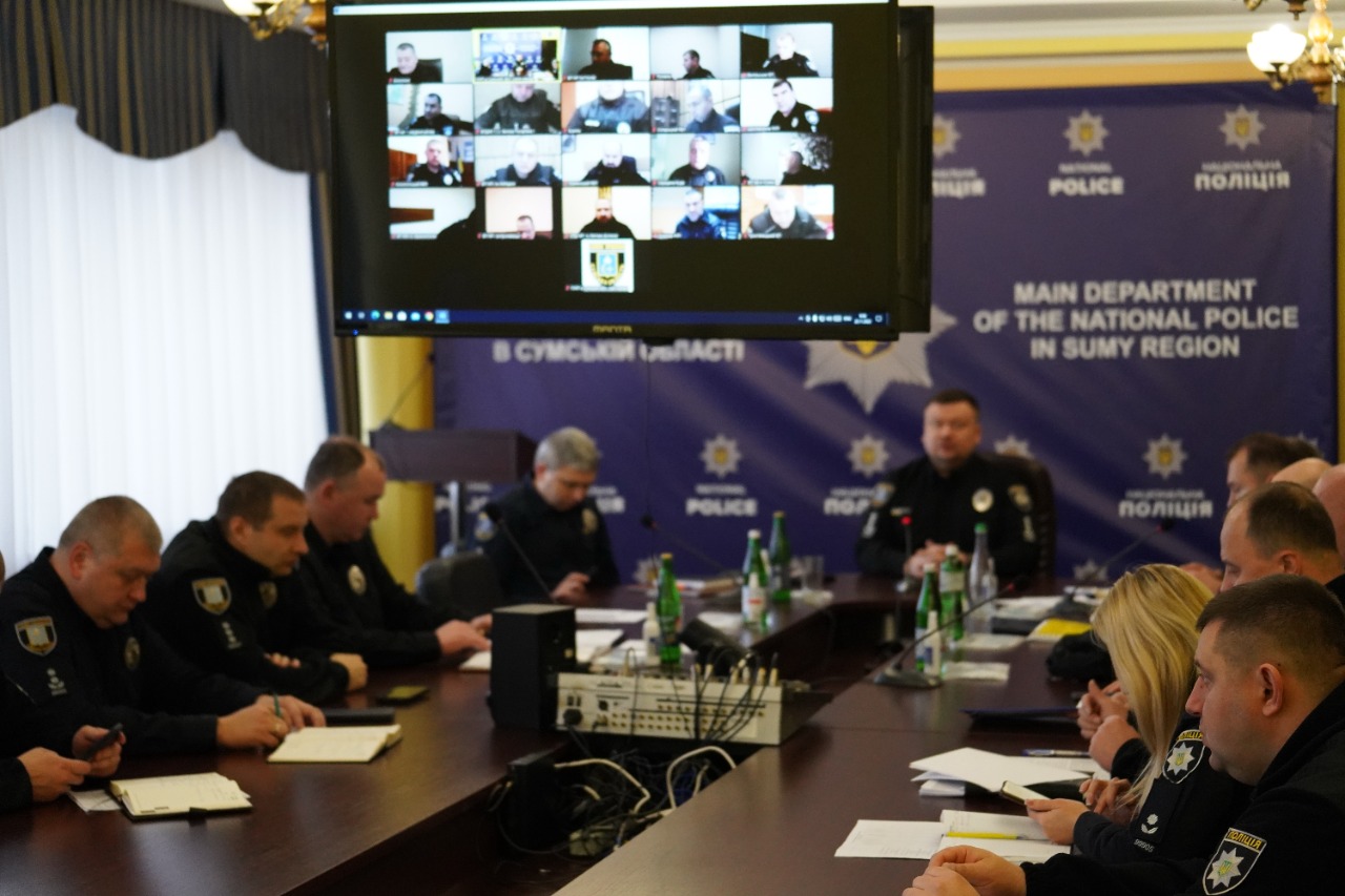 Нарада відбулася під головуванням начальника Головного управління Національної поліції в Сумській області Сергія Чижа, за участі його заступників, керівників структурних підрозділів поліції області та начальників територіальних підрозділів міжрегіональних (територіальних) органів НПУ.