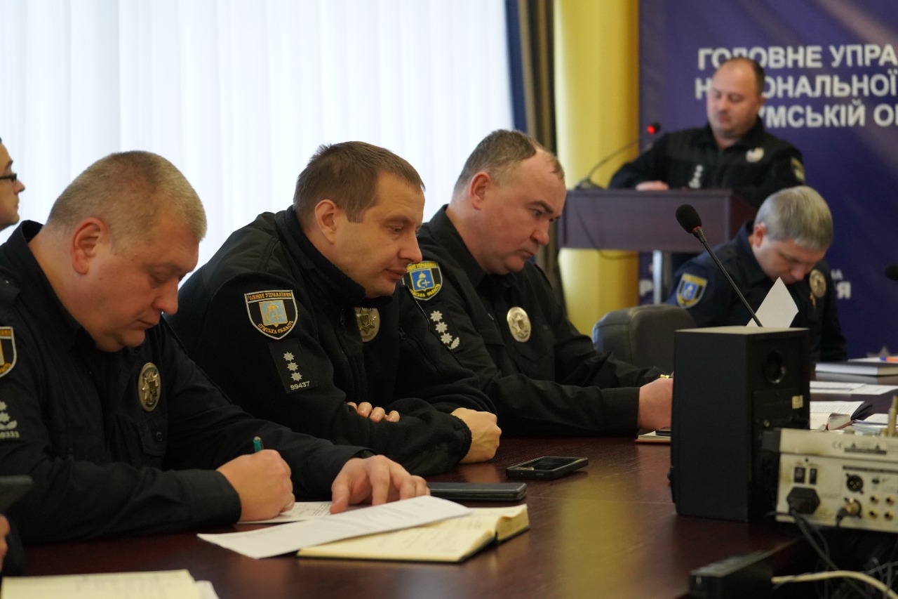 До наради у відеоселектроному режимі приєдналися керівники територіальних підрозділів поліції області, їх заступники.