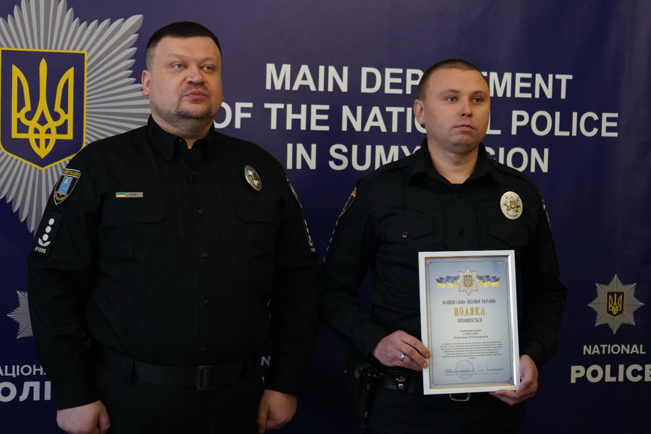 На початку за сумлінне виконання службових обов’язків, високий професіоналізм очільник поліції області нагородив кращих співробітників ГУНП в Сумській області медалями та оголосив подяки.