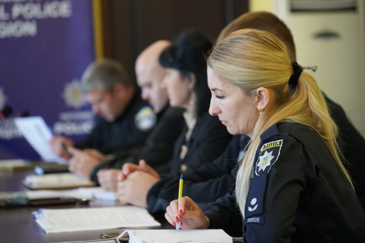 Присутні розглянули стан оперативної обстановки на минулому тижні та окремі питання службової діяльності підрозділів поліції області у період воєнного стану.