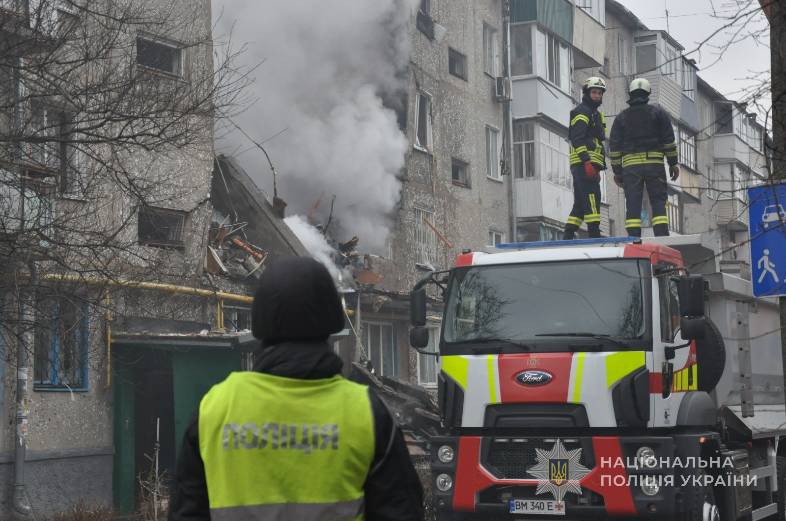 У Сумах ворог поцілив у багатоповерхівку, є загиблі та поранені: на місці працюють правоохоронці