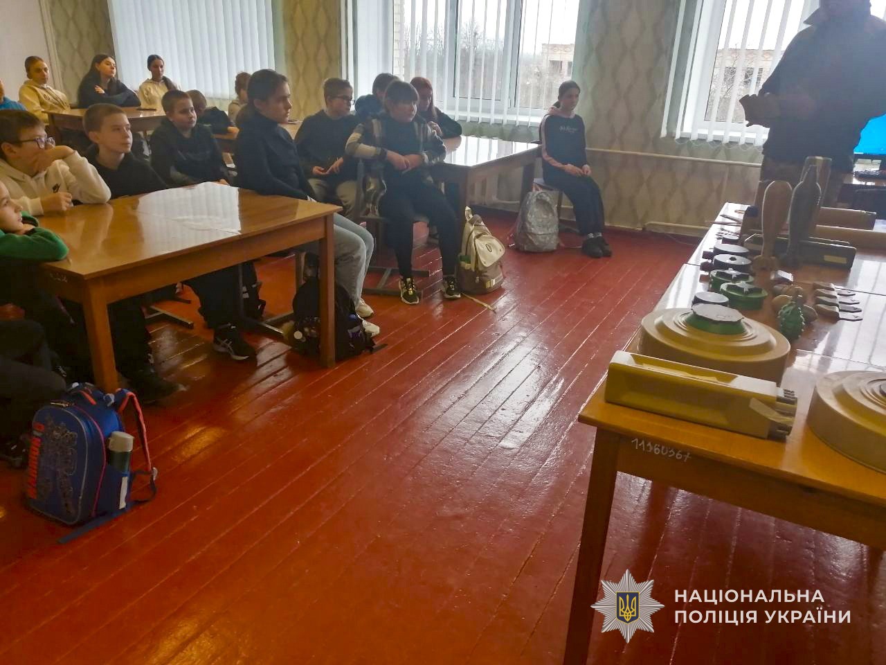 Працівники вибухотехнічної служби ГУНП в Сумській області провели для учнів навчального закладу профілактичне заняття, під час якого розповіли про загрози, пов’язані з вибухонебезпечними предметами, та навчили дітей правилам безпечної поведінки.