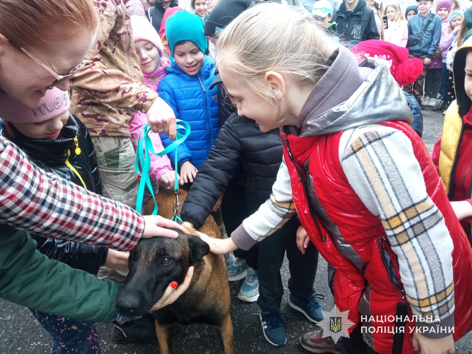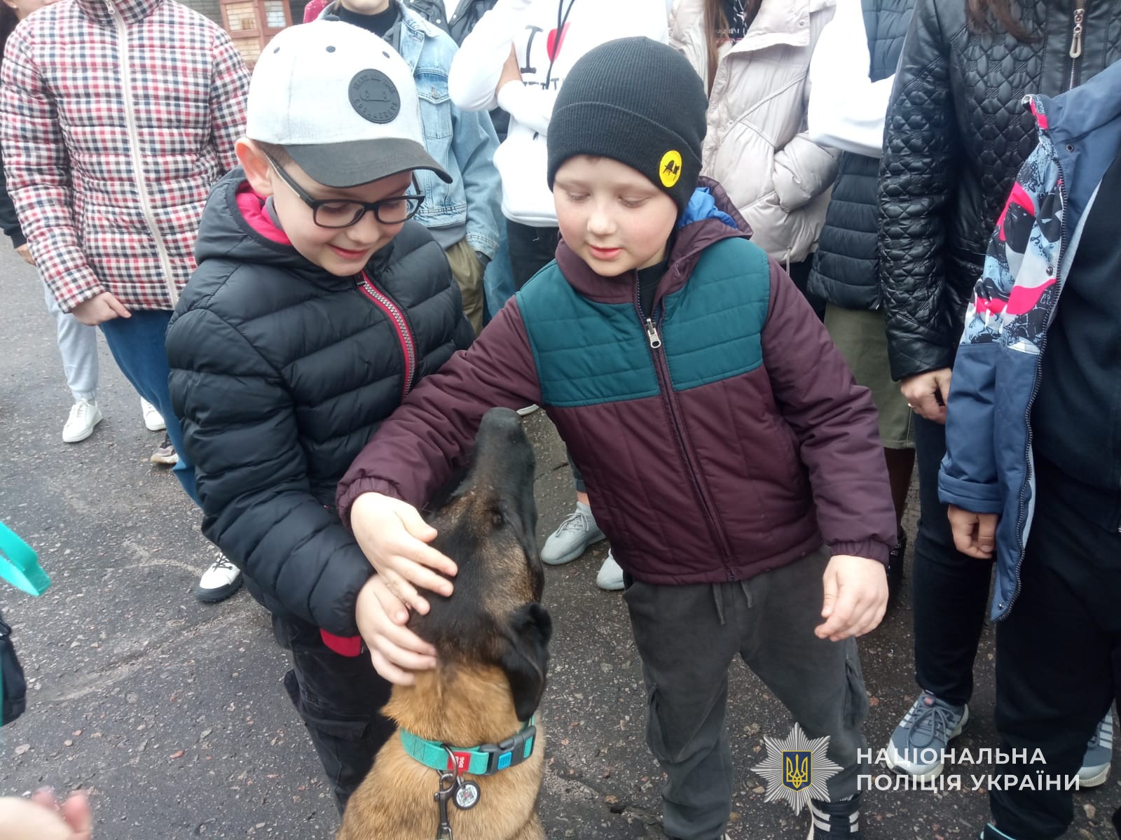 Працівники кінологічної служби демонстрували малечі вміння своїх чотирилапих напарників. Показали як собаки-пошуковці швидко знаходять загублені речі, оперативно затримують зловмисників та знаходять людей. Службові собаки, які спеціалізуються на пошуку наркотичних речовин, швидко знаходили заховані речі, а також муляжі предметів, які мають специфічний запах. Крім того кінологи показали як їх улюбленці виконують різні команди.