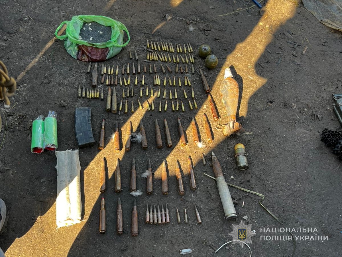 Під час санкціонованого обшуку правоохоронці вилучили понад 90 патронів різного калібру, два корпуси ручних гранат РГН, а також зразки порохових сумішей, які експерти визнали вибуховими речовинами.