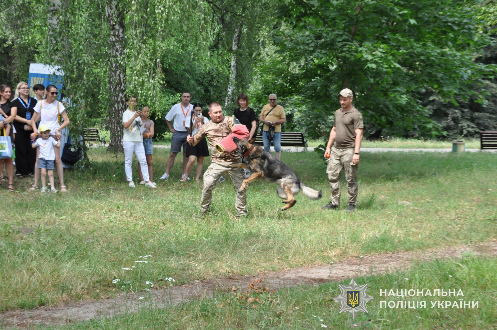 Працівники кінологічного центру, разом зі своїми вихованцями, продемонстрували багато чого цікавого. Зокрема, загальний курс слухняності тварини господарю, вміння службових собак йти по сліду та затримувати «злочинця».