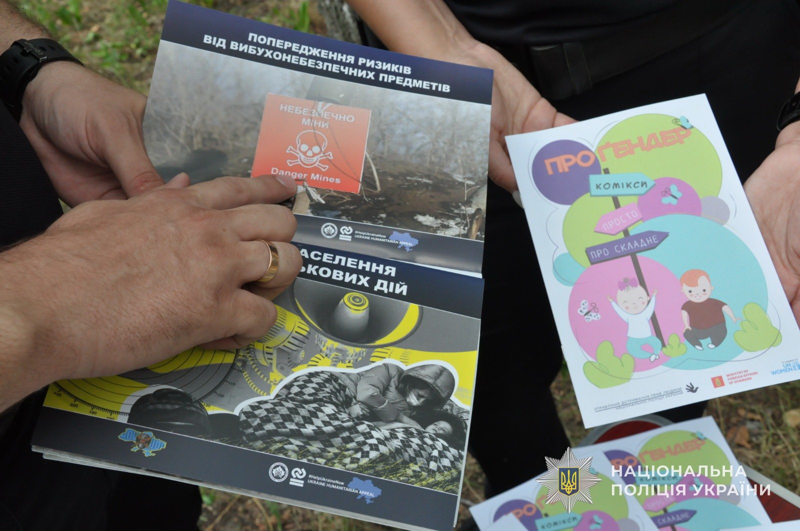 Зокрема про те, що сьогодні Україна залишається найбільш замінованою країною світу, а Сумська область, межуючи з росією, ще й піддається щоденним обстрілам з боку ворога. Тому треба обов’язково знати, як правильно діяти під час загрози авіаційного чи артилерійського ударів, що робити під час сигналу «Повітряна тривога», як діяти, коли вам на очі потрапить міна, снаряд, що не розірвався чи якийсь інший вибухонебезпечний предмет. Працівники поліції продемонстрували дітям фотографії боєприпасів, які використовують росіяни проти України, розповіли, яку загрозу несе кожен з них та подарували брошури з мінної безпеки. А співробітники Центру допомоги врятованим надавали дорослим членам родин юридичні поради та консультації.