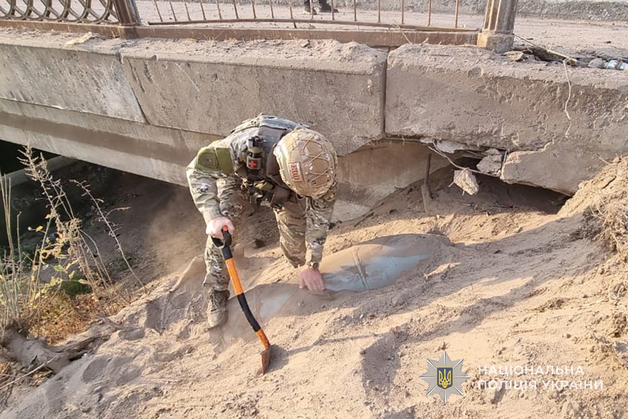 Для її знешкодження сьогодні виїхала мобільна група управління вибухотехнічної служби Головного управління Національної поліції в Сумській області. Вибухотехніки поліції знешкодили її, а потім, з залученням важкої техніки, витягли її та доставили у безпечне місце для знищення.