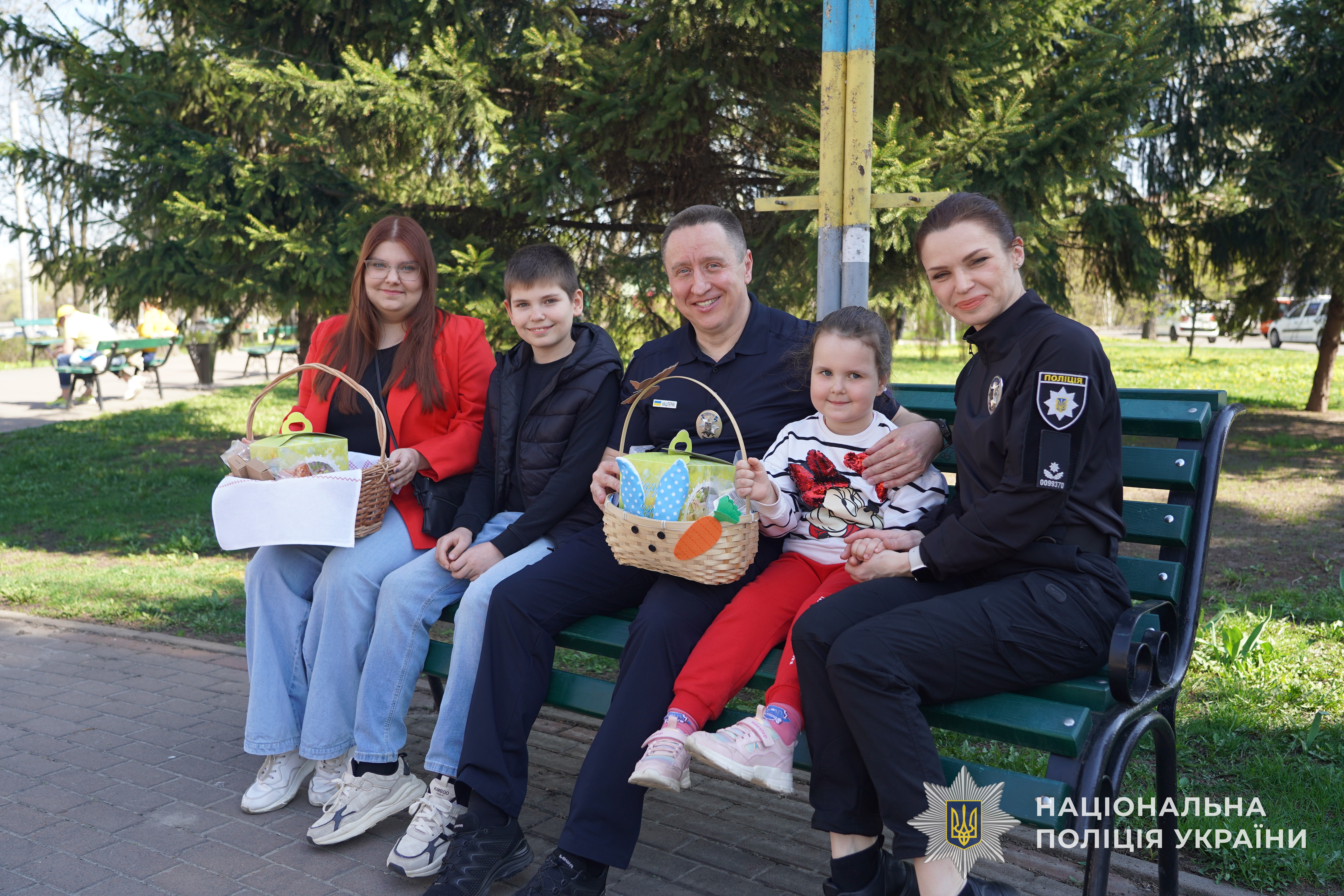 Малечі передали великодні кошики з пасками, солодощами та іншими святковими гостинцями. Ці символічні подарунки стали не лише виявом святкової уваги, а й знаком постійної підтримки з боку великої поліцейської родини.