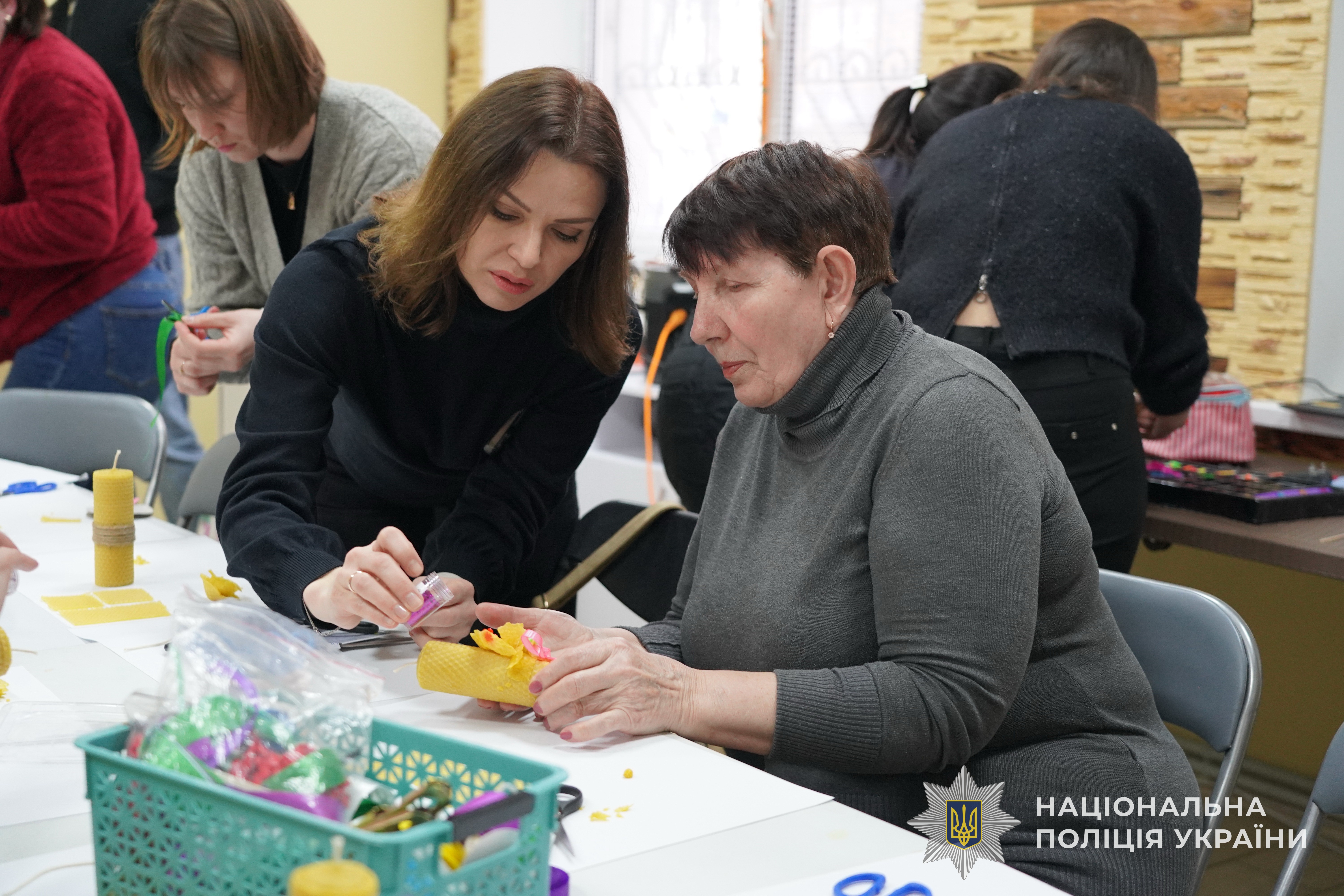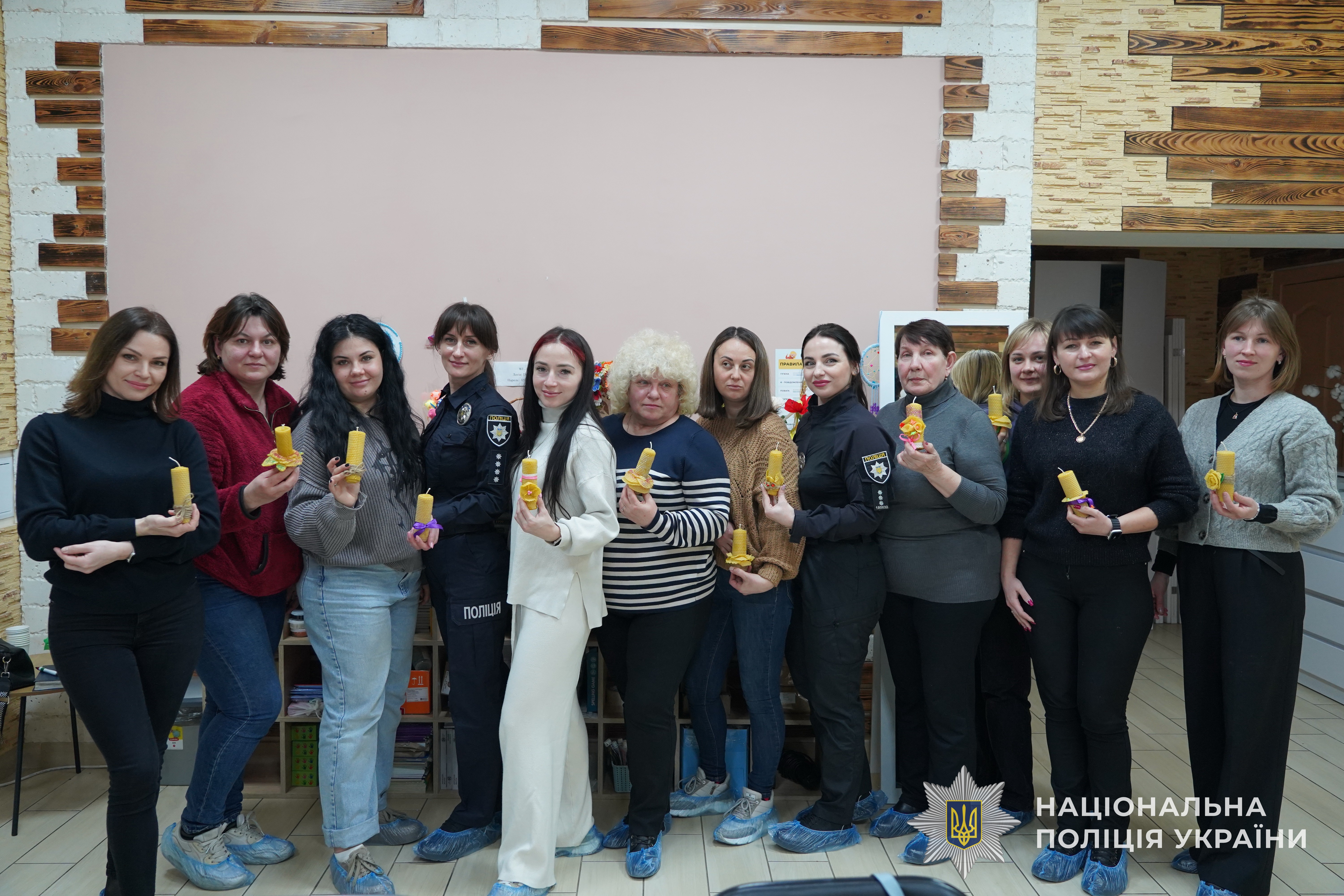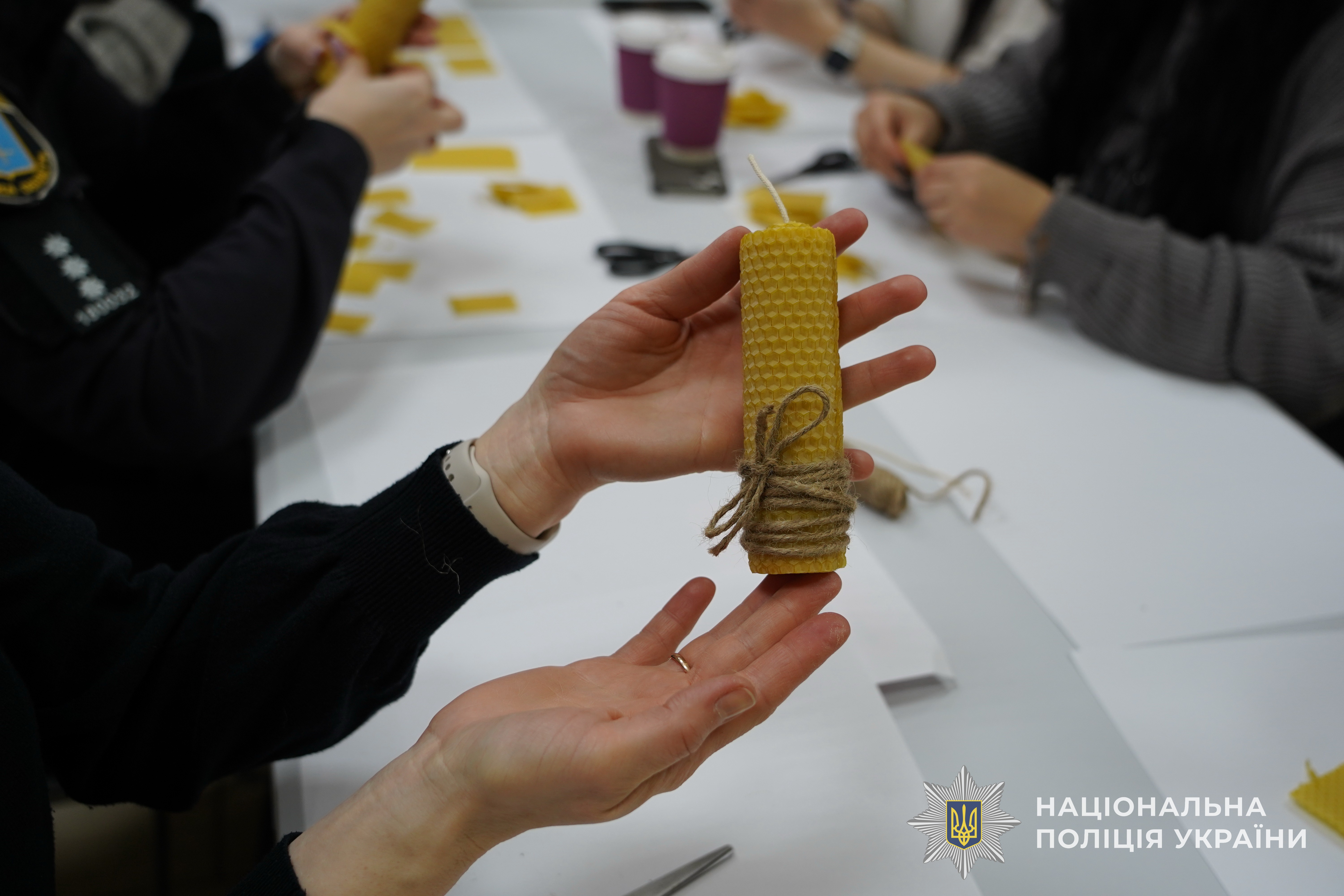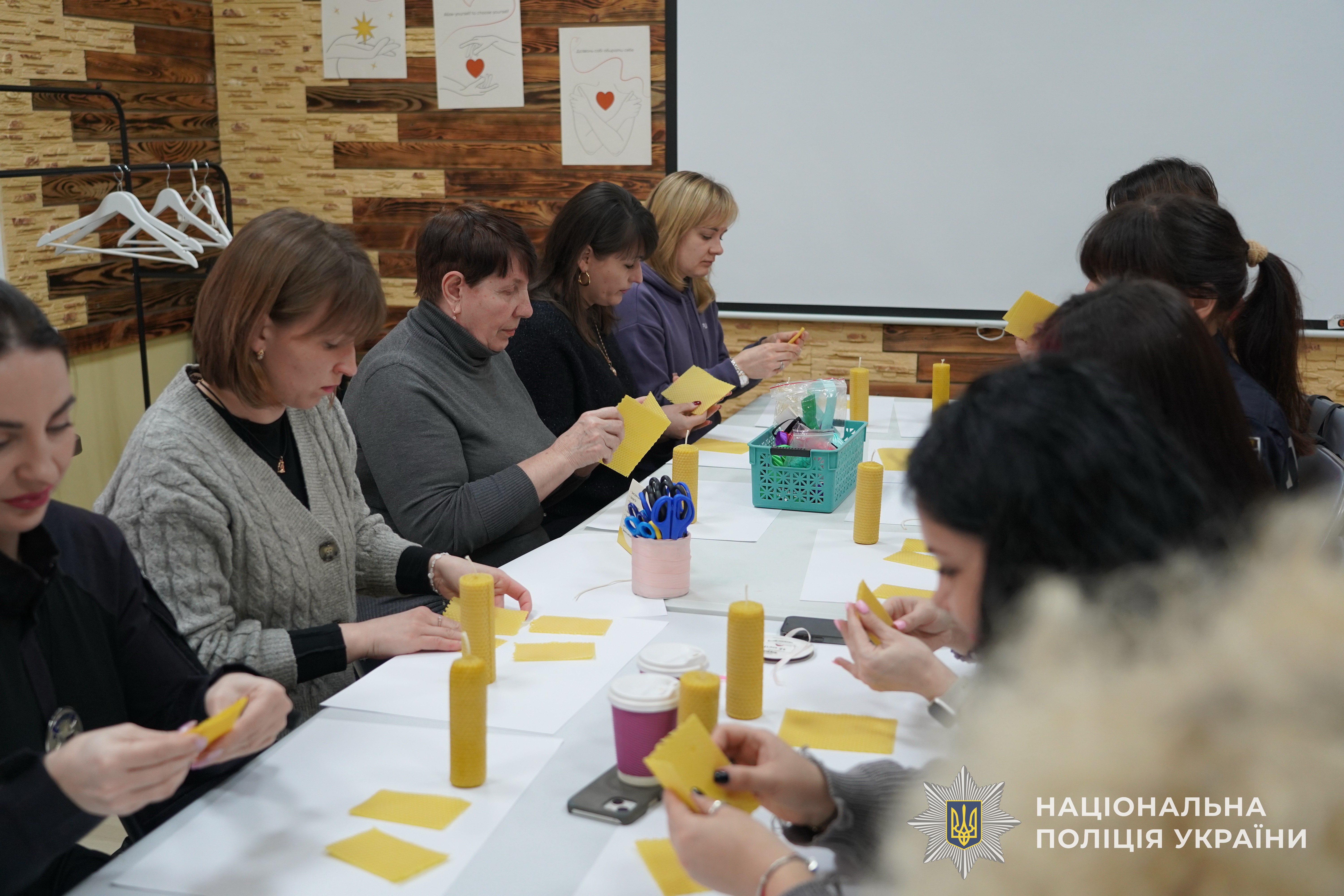 У передвеликодній час серця людей особливо потребують спокою — зокрема серця тих, чиї найрідніші не можуть бути поруч. Щоб хоч трохи відволіктися від буденних тривог, поліцейські кадрового забезпечення організували терапевтичний майстер-клас з виготовлення свічок. Захід був присвячений жінкам — дружинам і матерям правоохоронців, чиї чоловіки та сини зазнали поранень під час виконання бойових завдань або віддали своє життя за незалежність України.