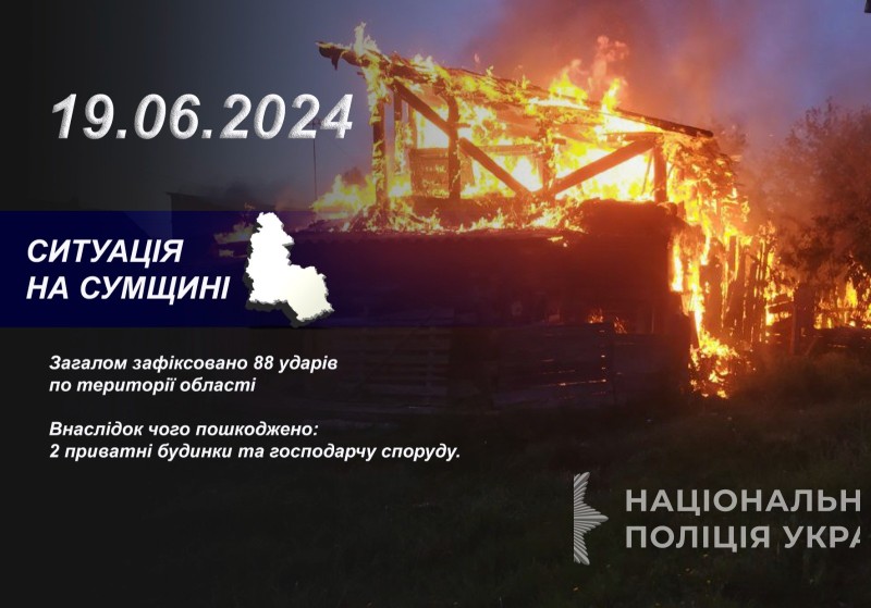 Протягом минулої доби окупанти обстріляли населені пункти Сумської області. Загалом нараховано 88 ударів.