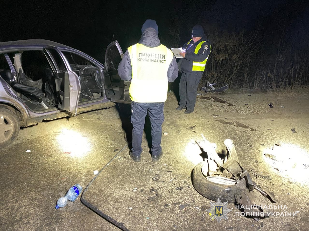 Зіткнення двох автомобілів призвело до тяжких наслідків. На місці події працювали слідчі, криміналісти та патрульні.