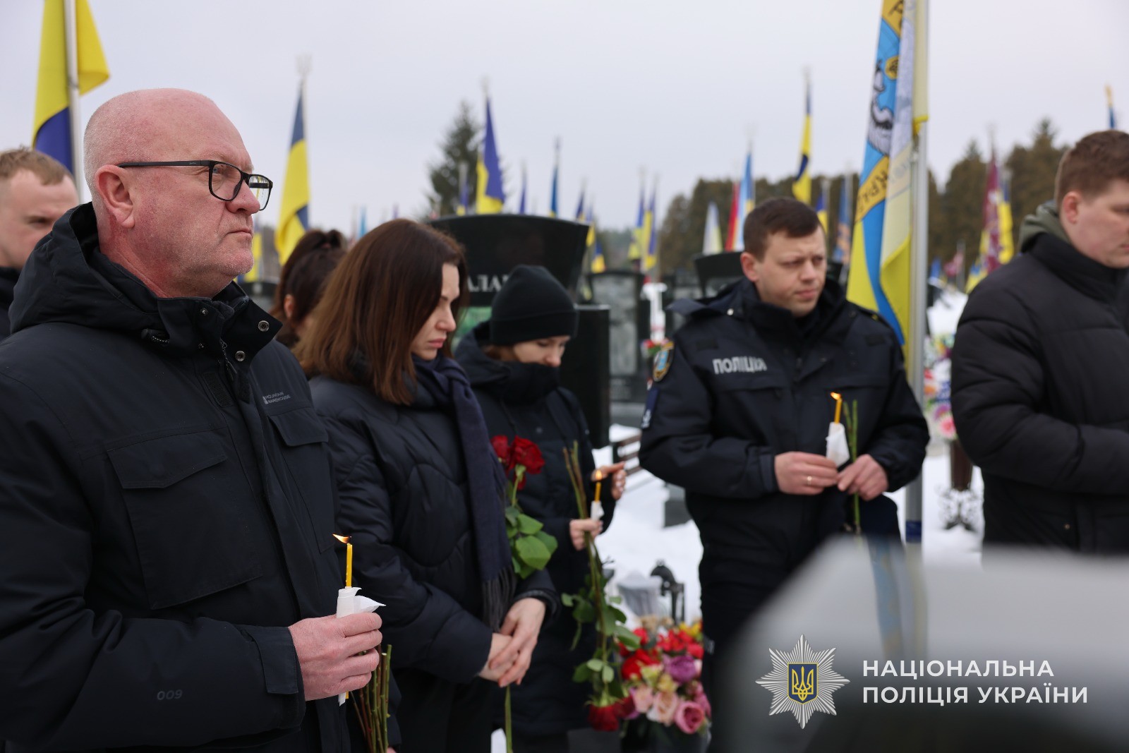 Сьогодні до місць поховання загиблих прийшли їхні колеги, друзі, рідні та близькі. Разом із особовим складом пам’ять побратимів вшанував начальник Головного управління Національної поліції в Сумській області Олег Кашперук.