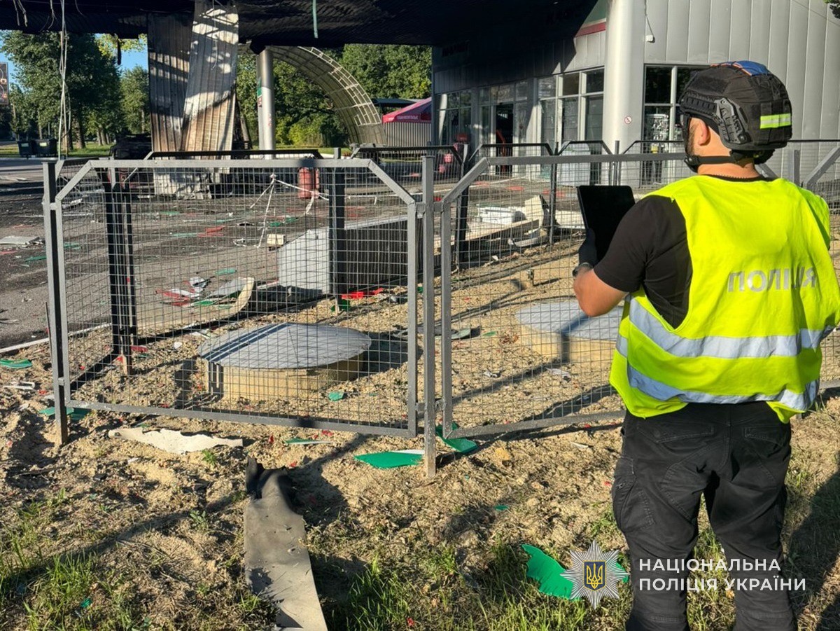 Пошкоджено будівлю АЗС, два транспортні засоби та багатоповерховий будинок поблизу. Водій автівки отримав опіки й зараз перебуває під наглядом медиків.