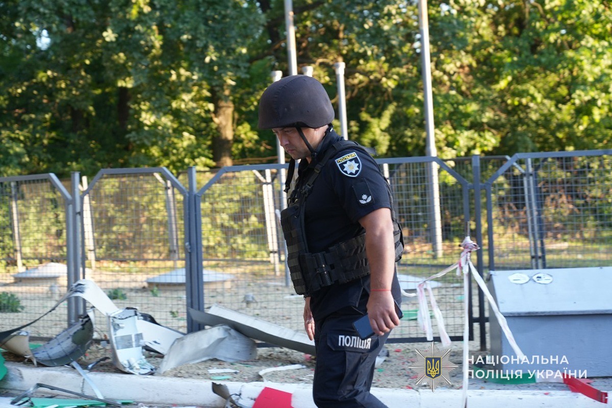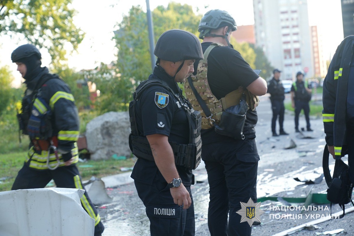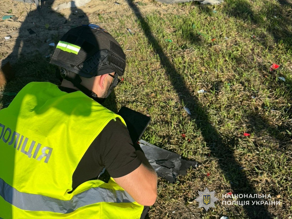 На місці працюють слідчо-оперативна група поліції — правоохоронці фіксують руйнування та збирають докази воєнного злочину.