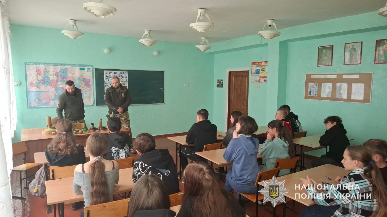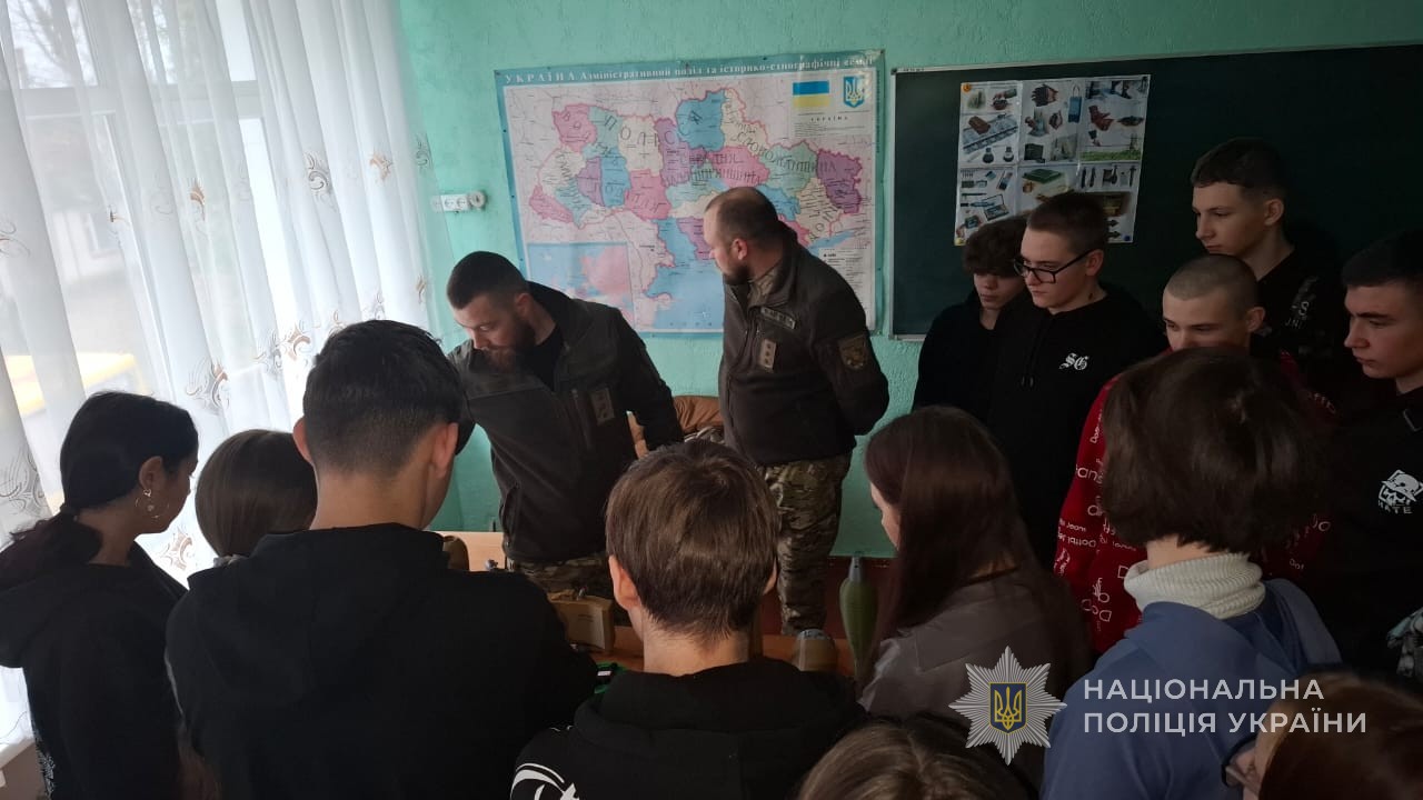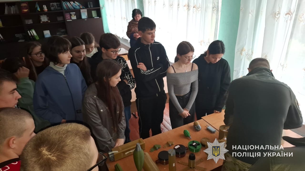 Цього дня вибухотехніки завітали до однієї зі шкіл, аби розповісти учням і педагогам про небезпеки, з якими можна зіштовхнутися під час війни. Йдеться про різні види армійських боєприпасів: безпілотники, ракети, снаряди, міни, набої, вибухові пристрої кустарного виробництва та міни-пастки. Поліцейські наголосили: ніколи не можна торкатися випадково знайдених вибухонебезпечних предметів чи їх фрагментів, адже це смертельно небезпечно.