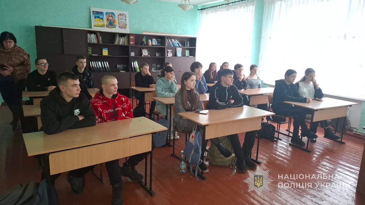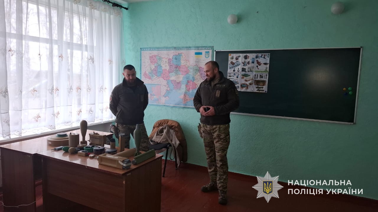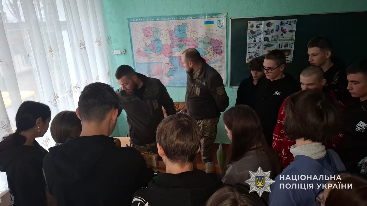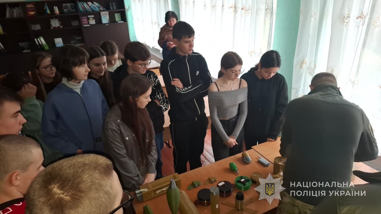 Цього дня вибухотехніки завітали до однієї зі шкіл, аби розповісти учням і педагогам про небезпеки, з якими можна зіштовхнутися під час війни. Йдеться про різні види армійських боєприпасів: безпілотники, ракети, снаряди, міни, набої, вибухові пристрої кустарного виробництва та міни-пастки. Поліцейські наголосили: ніколи не можна торкатися випадково знайдених вибухонебезпечних предметів чи їх фрагментів, адже це смертельно небезпечно.