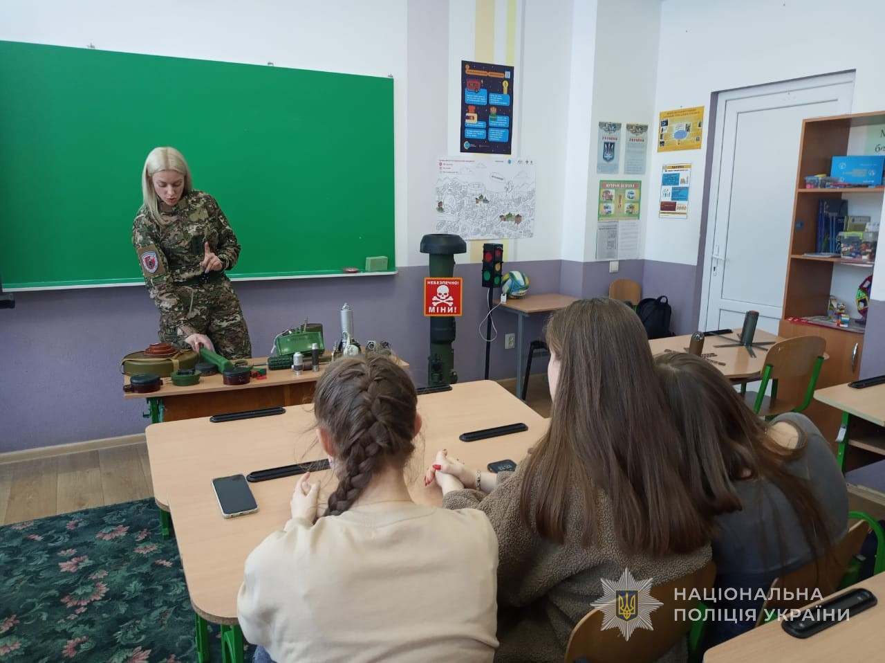 Поліцейська сапер нагадала учням і педагогам, що міни оснащені різними сенсорами (натискання, натягування, світла, вібрації і т.п.). Деякі міни мають механізм самознищення і можуть вибухнути будь-якої миті, навіть якщо з ними зовсім не взаємодіяти. В жодному випадку не можна намагатися знищити вибухівку самостійно. У випадку її виявлення потрібно залишити небезпечне місце, тим же шляхом, яким ви прийшли, відмітити місце знахідки та повідомити ДСНС за номером 101 або поліцію за номером телефону 102.