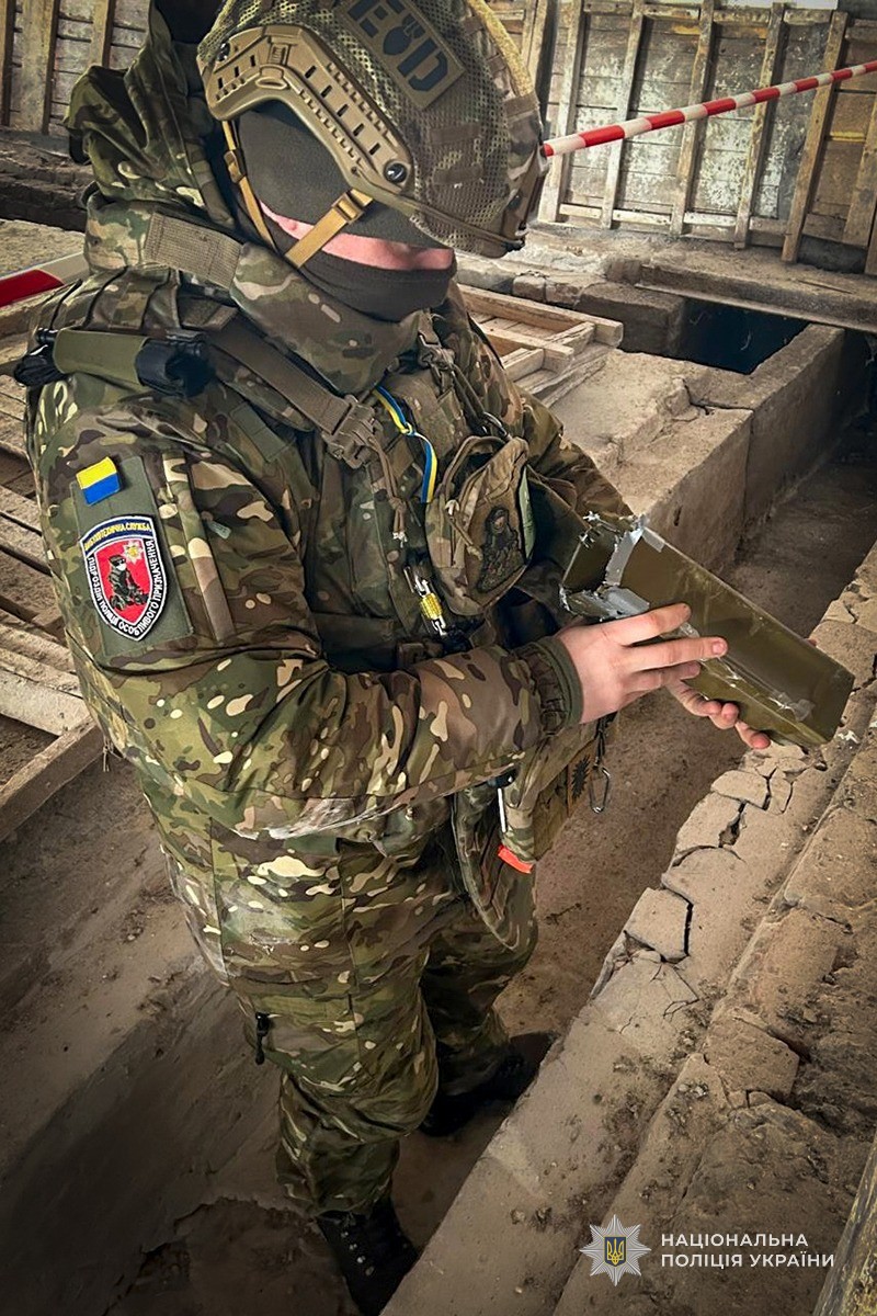 Провівши огляд уламків російського безпілотного літального апарату, вибухотехніки поліції встановили, що його бойова частина складалася з двох протитанкових мін ПТМ – 3, які частково зруйнувалися під час падіння.