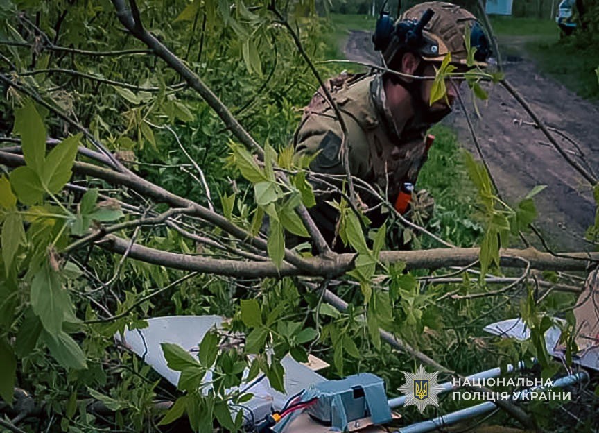 Спеціалісти вибухотехнічної служби поліції виявили ворожий БпЛА, до якого кріпилась вибухівка у одній із прикордонних громад.