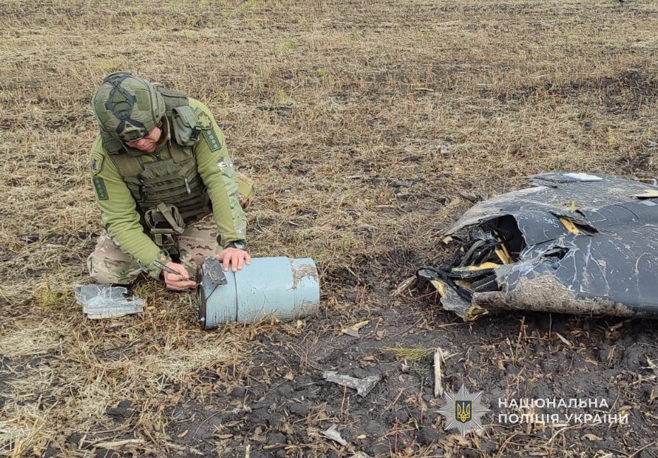 Оглянувши пошкоджений БПЛА, вибухотехніки поліції провели знешкодження його бойової частини та вивезли вибухівку в безпечне місце для знищення.