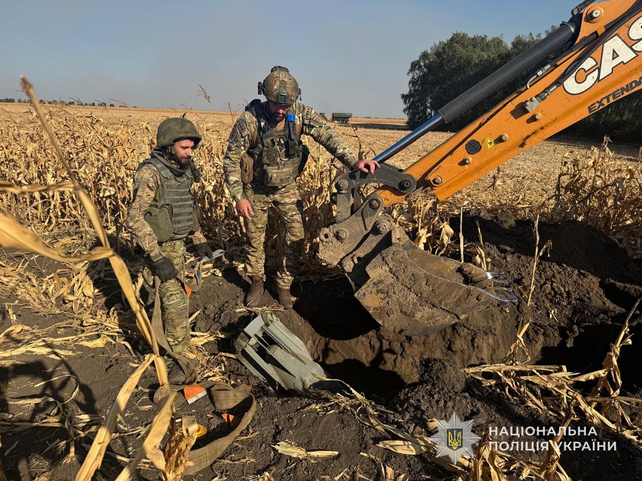 А вчора, на кукурудзяному полі у Сумському районі, фахівці управління вибухотехнічної служби ГУНП в Сумській області, знешкодили та вивезли для знищення 250-кілограмову авіаційну бомбу росіян ФАБ-250 з універсальним модулем планування і корекції. Для того, щоб дістати цей вибухонебезпечний предмет з грунту, було залучено спеціальну техніку.