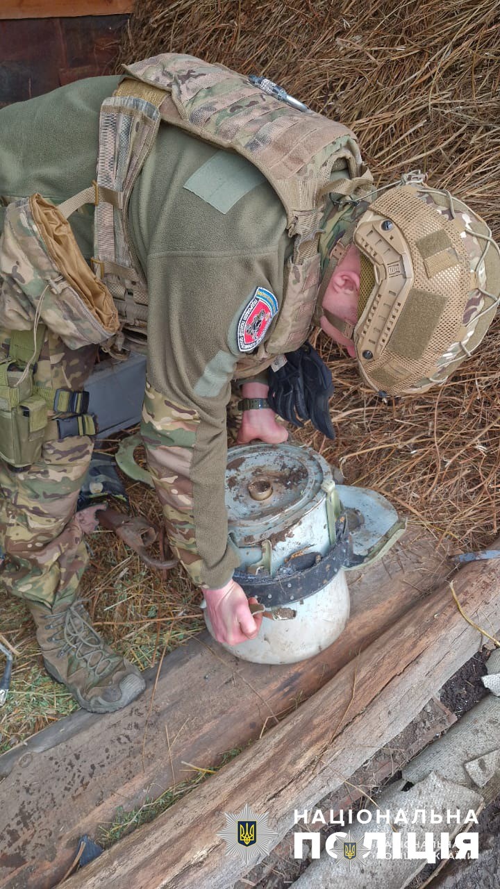 На території приватного домоволодіння у селі на Сумщині було виявлено один зі збитих силами оборони України ударних безпілотників росіян, бойова частина якого на щастя не вибухнула під час падіння. Провівши огляд знайдених уламків безпілотного літального апарату, вибухотехніки поліції Сумщини здійснили знешкодження його 50-ти кілограмової бойової частини.