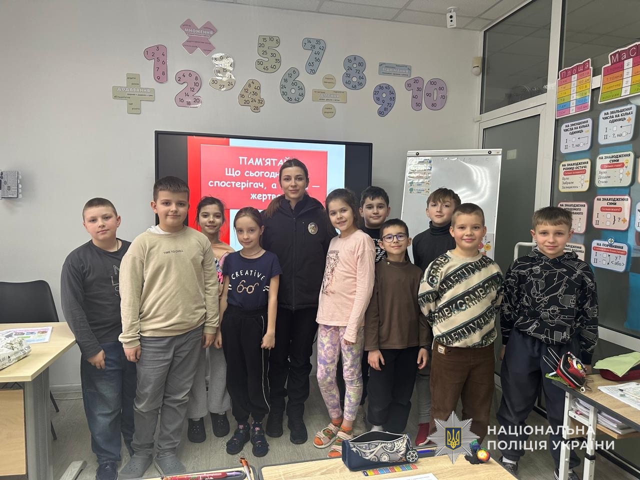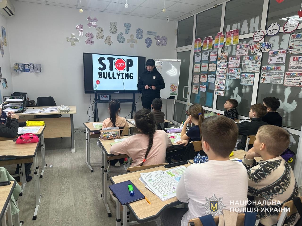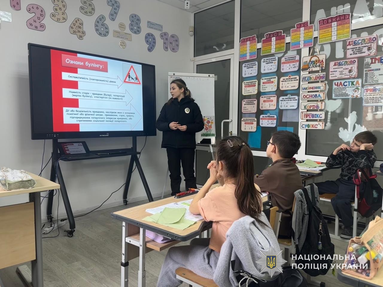 Правоохоронці пояснили дітям, що булінг — це не просто сварка, а систематичне приниження, образи або інші дії, які можуть завдати шкоди. Його прояви можуть бути різними: словесні образи, ігнорування, поширення чуток, фізичний вплив або цькування в інтернеті.