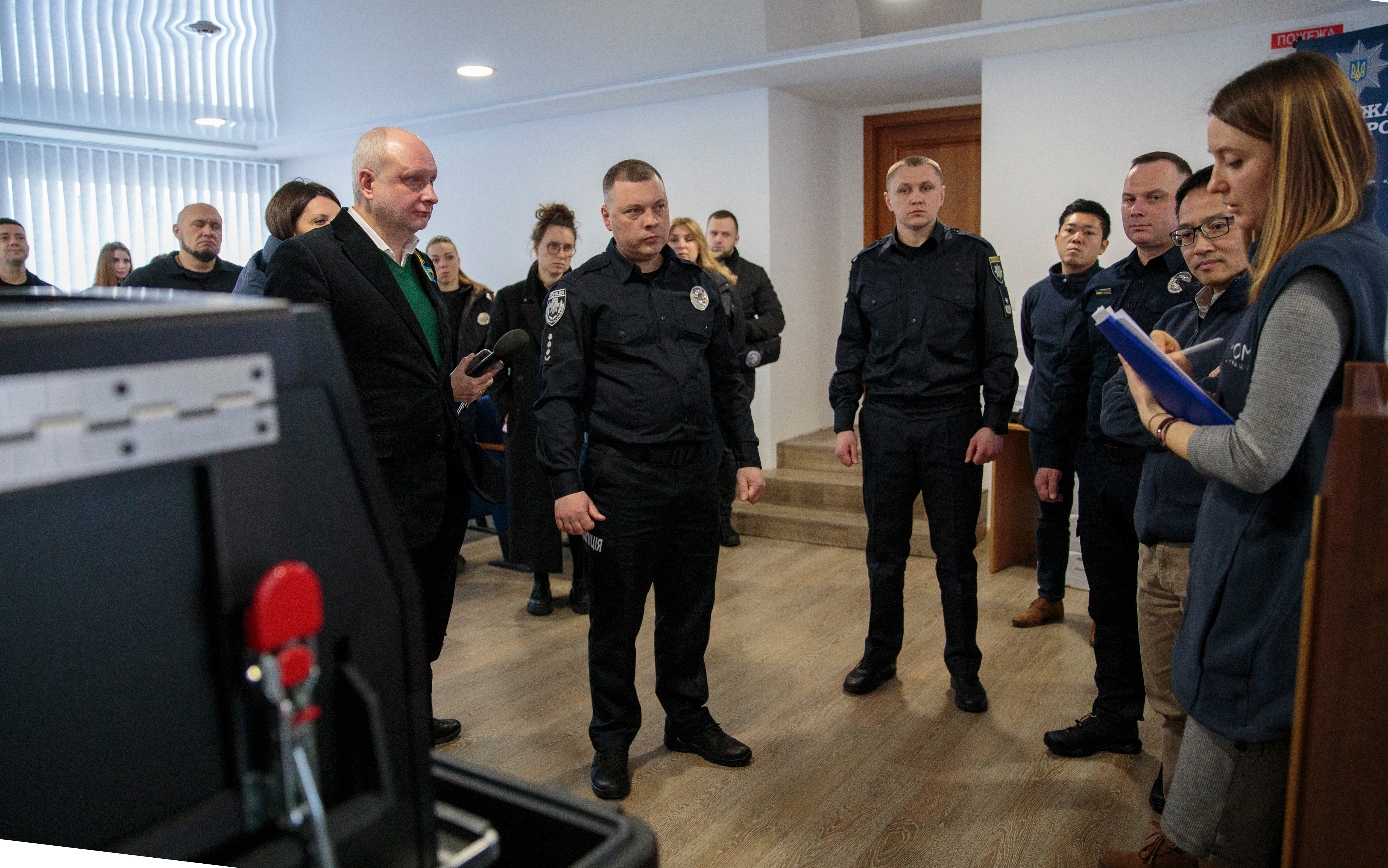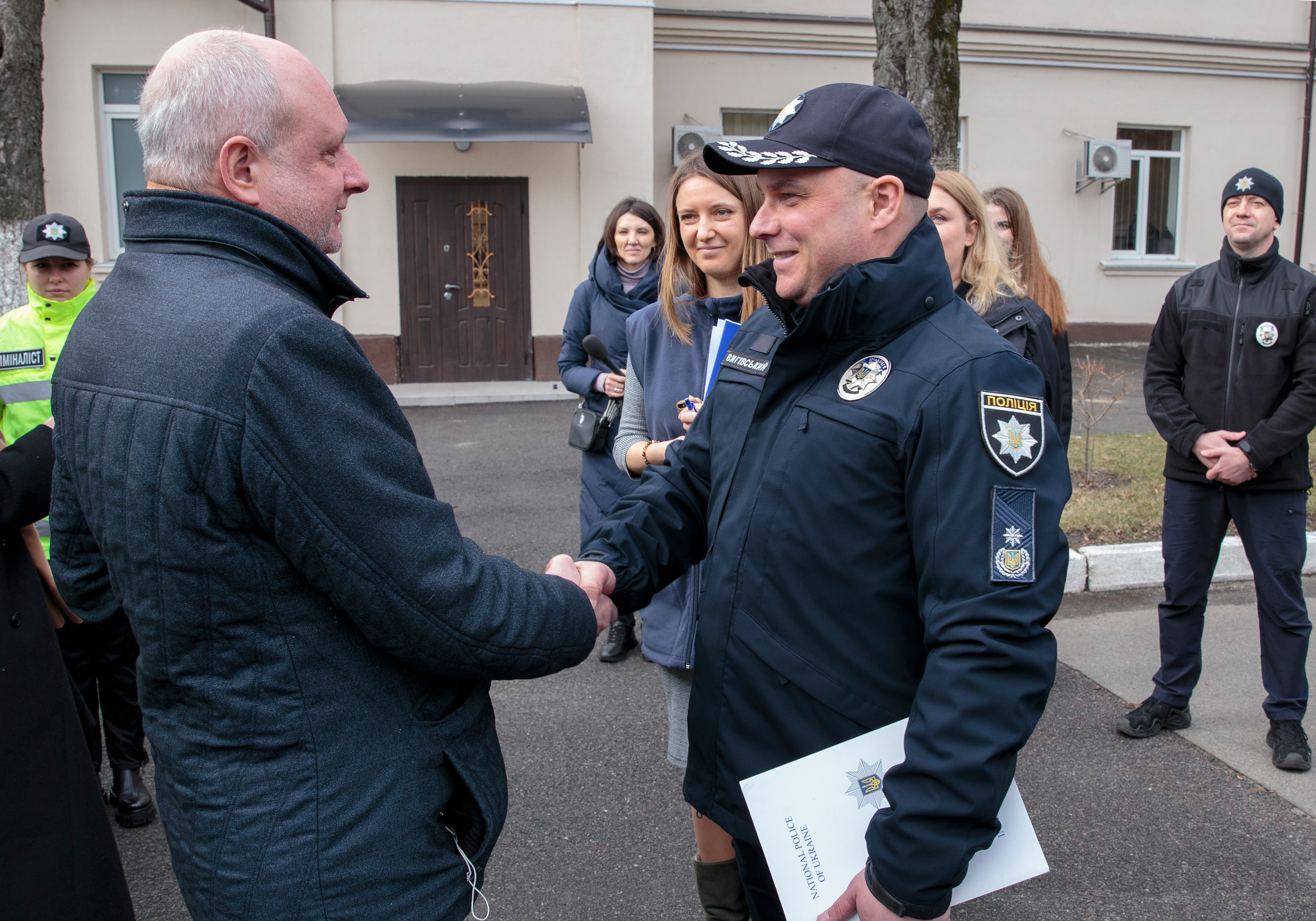 Участь у церемонії передачі взяли виконувач обов’язків Голови Національної поліції України Іван Вигівський, заступник Голови Нацполіції Максим Цуцкірідзе, Голова Представництва ЄС в Україні, посол ЄС Матті Маасікас, Голова Представництва Міжнародної організації з міграції в Україні Ан Нгуєн.