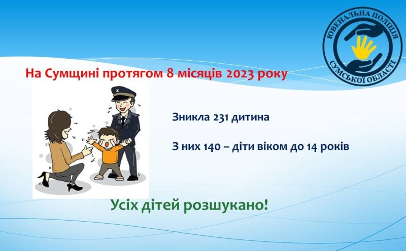 Ювенальна поліція Сумщини розшукала 231 дитину з початку 2023 року