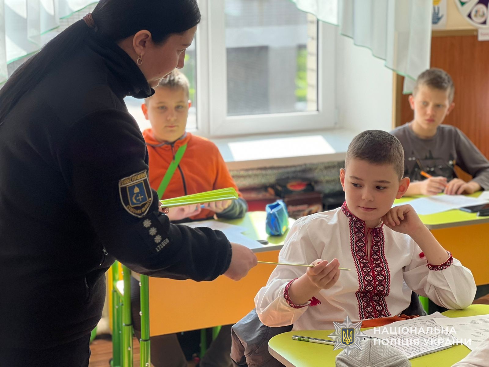 Поліцейська разом з учнями обговорила правила дорожнього руху та дорожні знаки, що регулюють рух пішоходів. Також пояснила, що проїзна частина – це зона підвищеної небезпеки і кожне відхилення від передбачених правил може загрожувати життю чи здоров’ю. Інспекторка наголосила про важливість використання світлоповертальних елементів в темний час доби та подарувала діткам флікери, аби вони були більш помітні ввечері.