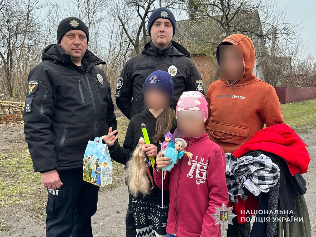Родинам з дітьми інспектори поліції доставили пакунки, які містили одяг, іграшки та солодкі смаколики.