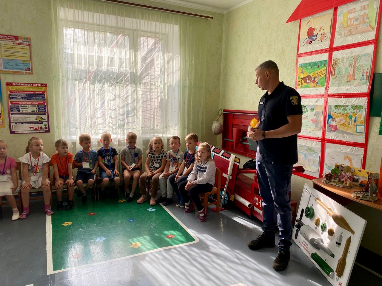 Наприкінці лекції інспектори разом з малюками та вихователями відпрацювали алгоритм дій при сигналі повітряної тривоги. Всі учасники пройшли в тимчасове укриття та обговорили чому необхідно швидко реагувати на небезпеку.