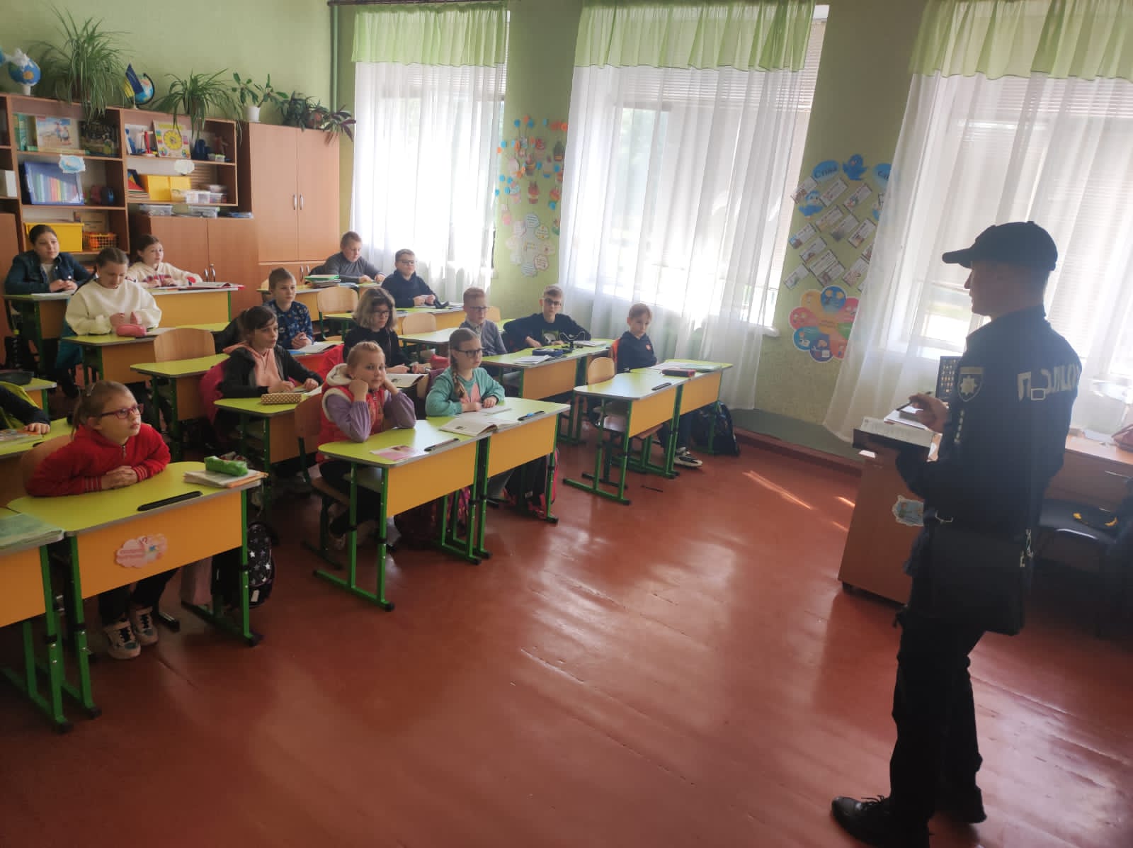 З учнями молодших класів інспектор поліції провів виховну бесіду на тему правил безпечного відпочинку біля водойм.