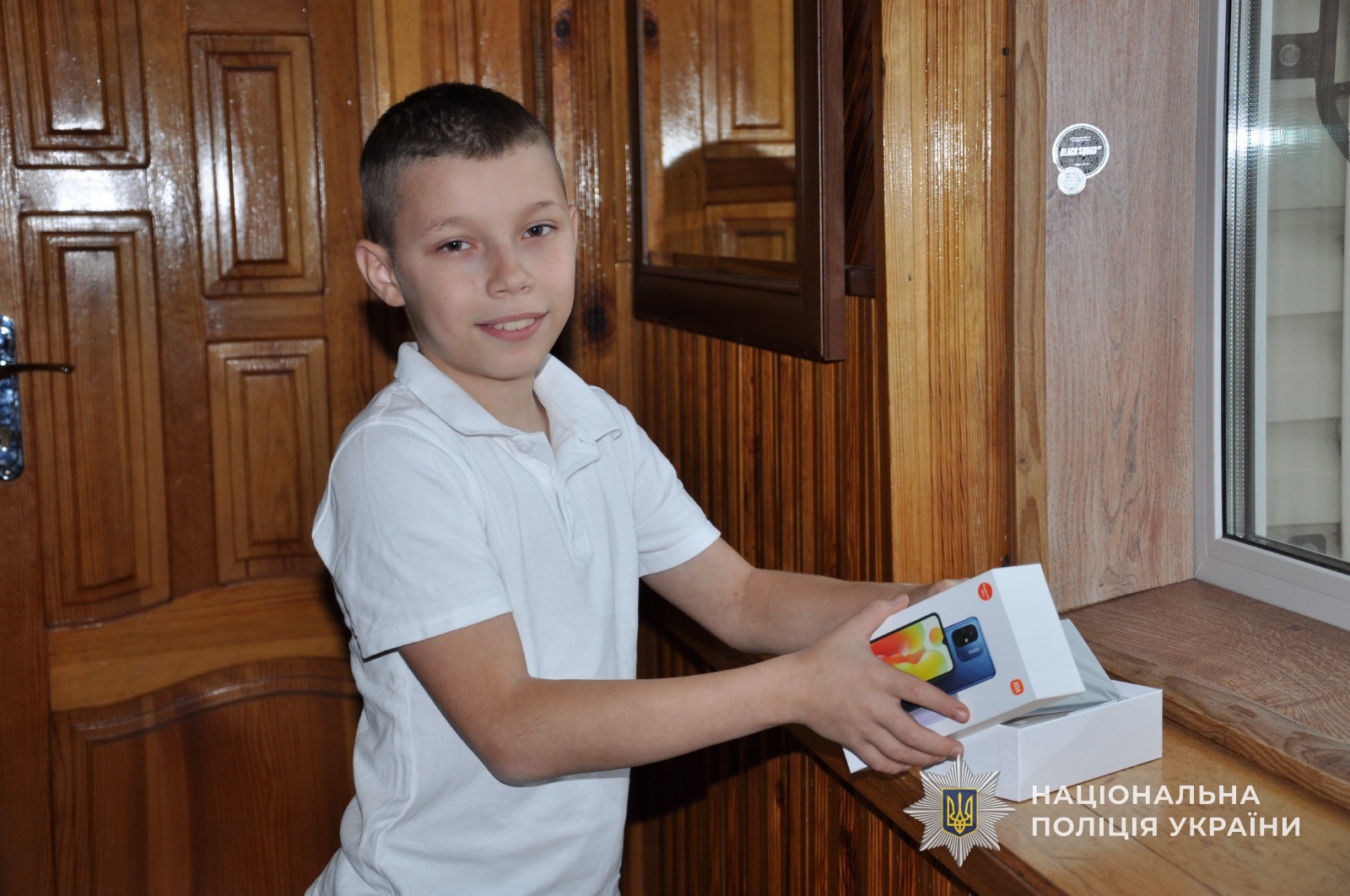 Дванадцятирічному Богдану поліцейські зробили подарунок, про який він давно мріяв, - сучасний смартфон. Хлопчина дуже зрадів такому бажаному подарунку і пообіцяв гостям добре навчатися та займатися спортом.