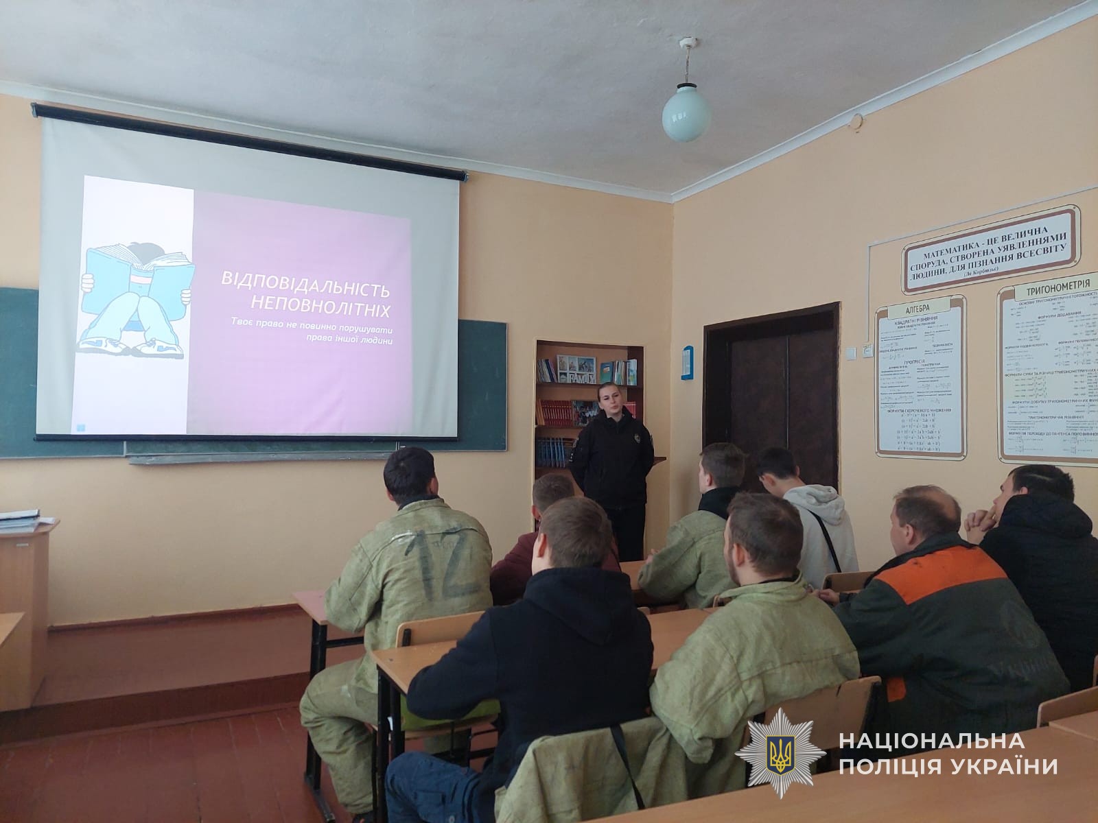 Так, напередодні інспектор завітала до одного з навчальних закладів професійно-технічної освіти. З учнями даного навчального закладу вона обговорила питання відповідальності неповнолітніх. Спільно розглянули найпоширеніші види адміністративних та кримінальних правопорушень, що вчиняються неповнолітніми, а також реальні приклади покарань за такі дії.