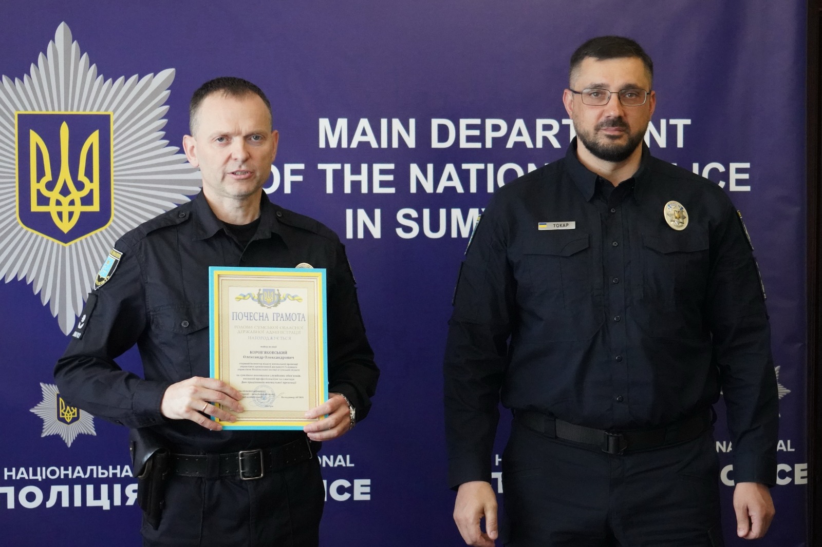 Так, до Дня працівників ювенальної превенції, начальник ГУНП в Сумській області нагородив працівників поліції грамотами, цінними подарунками та вручив спеціальне звання. Окрім того, за активне сприяння, плідну взаємодію та сумлінну високоефективну працю правоохоронцям вручили почесні грамоти Сумської обласної військової адміністрації, в тому числі від Департаменту освіти і науки.