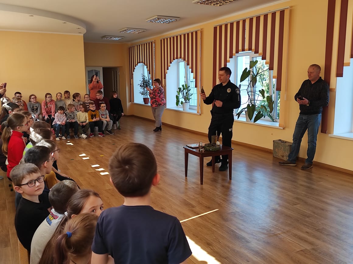 Розповідь поліцейський доповнював демонстрацією навчальних зразків вибухонебезпечних предметів.