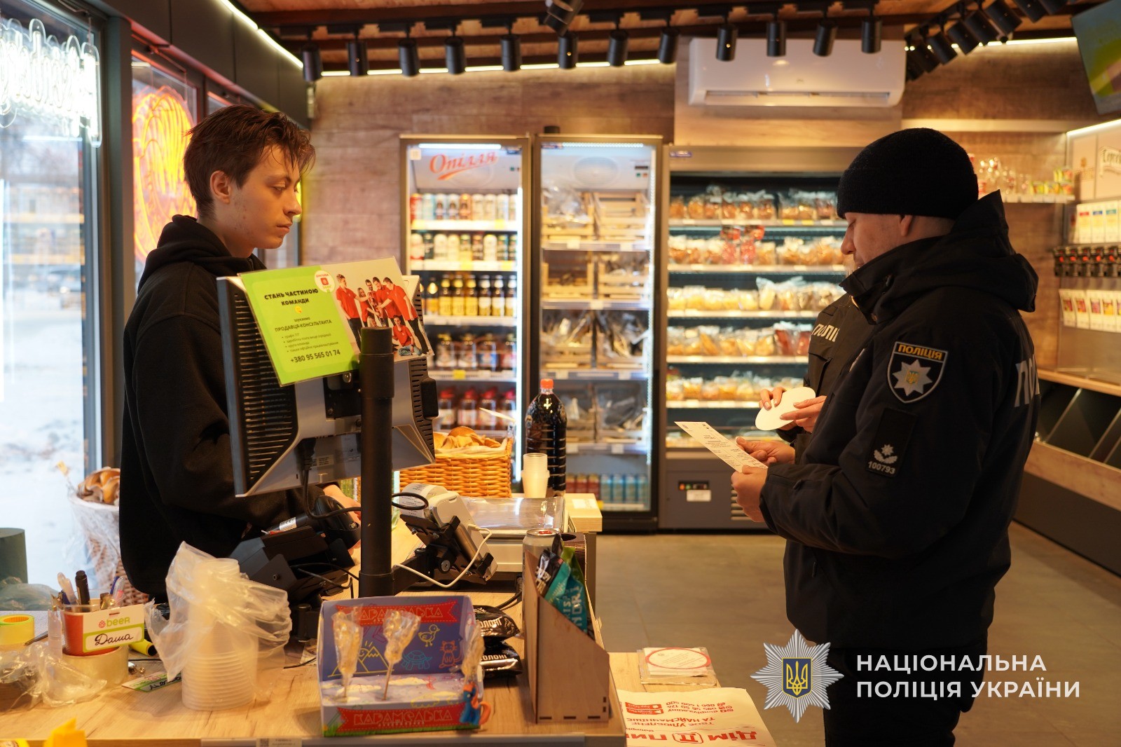 Ювенальні поліцейські спільно з працівниками Управління патрульної поліції провели профілактичний захід, спрямований на недопущення продажу алкогольних напоїв та тютюнових виробів особам, які не досягли 18 років.
